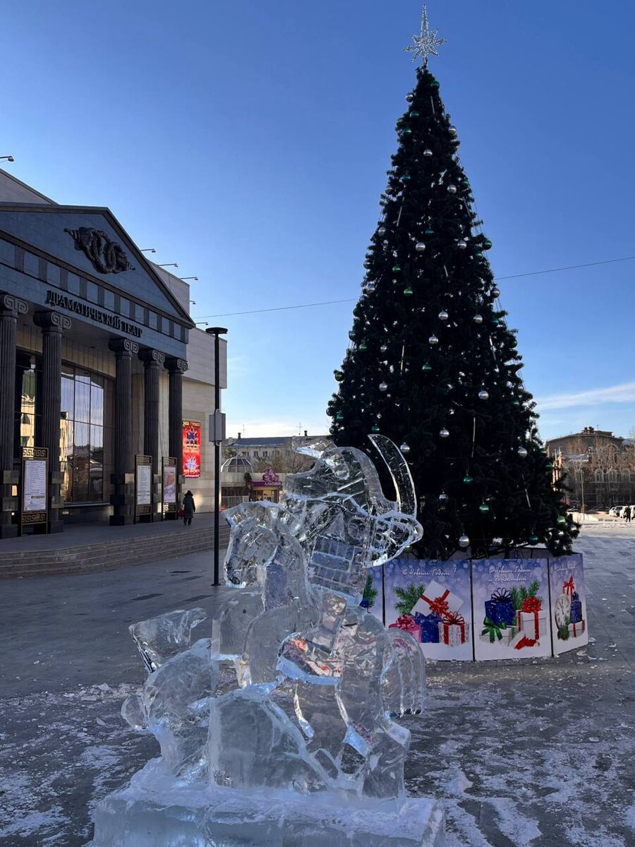 ✨Праздник к нам приходит! Вслед за торговыми центрами первую елку поставили на Театральной площади. Там же появилась и ледяная скульптура с лошадью. Есть у вас новогоднее настроение? 👍🏻/🤔 ⏹ «Чита.Ру» разыгрывает машину дров среди подписчиков в МАХ