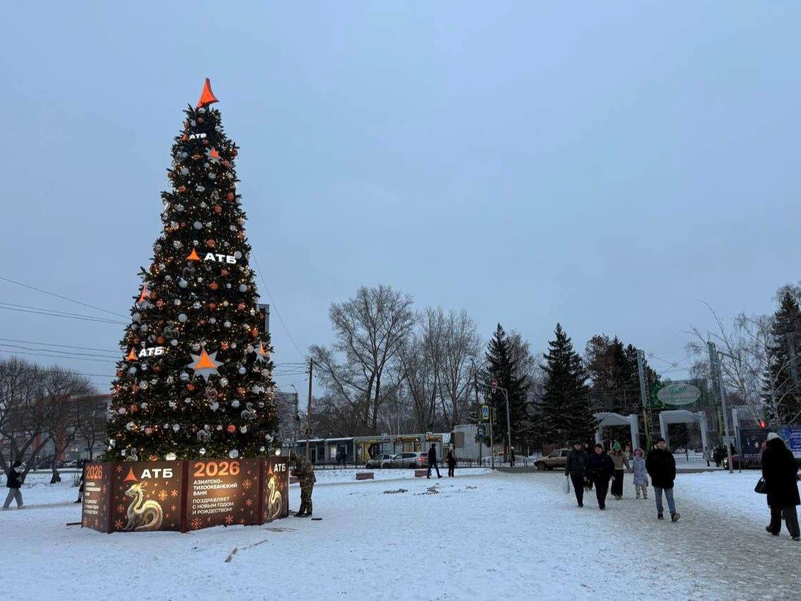 В Омске у парка им. 30-летия ВЛКСМ установили новогоднюю ёлку