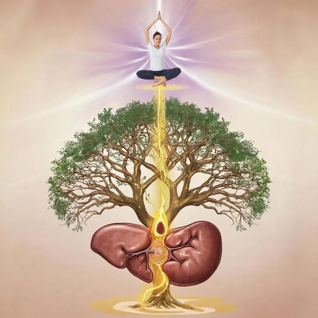 Мы ищем сложные решения там, где тело ждёт простой мудрости. Желчь — это не просто жидкость. Это живая река, что омывает вашу внутреннюю экосистему, расщепляя не только жиры, но и токсины усталости, стресса, непрожитых эмоций. --- 🌊 Река жизни: почему подвижность желчи определяет ваше состояние Когда желчь застаивается: · Кожа кричит — появляются дерматиты, высыпания, тусклый цвет лица · Гормоны сходят с ума — эстроген не выводится, создавая хаос в цикле и настроении · Пищеварение спит — даже самая лёгкая пища становится тяжестью · Энергия застревает — как машина с засорённым топливным фильтром Но эту реку можно разбудить. Всего двумя ключами. --- 🧘♀️ Практика «Пробуждение реки» Утренний ритуал натощак 1. «Живая вода» Проснувшись, до всего: · Выпейте медленными глотками стакан горячей (70°C) воды · Представьте, как тепло разжижает ночные застои · Сядьте спокойно на 5 минут, чувствуя пробуждение 2. «Скрутка-насос» Сидя на стуле или на полу: · На вдохе вытяните позвоночни