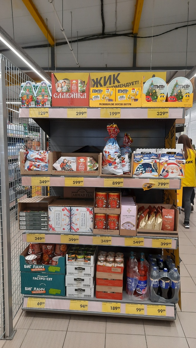 Приветствую вас, мои дорогие друзья и подписчики. Покажу вам новогодние сладкие подарки в Чижике. Магазин находится по адресу Ростовская область, Зерноградский район, город Зерноград, улица Тельмана, 55 Набор конфет Konti Мишаня 150 г цена 129 рублей. Страна Россия. Набор конфет Лучшее от Фабрики Крупской 215 г цена 299 рублей. Страна Россия. Набор конфет M&M's and Friends Маленькая посылка 99 г цена 199 рублей. Страна Россия. Драже M&M's с арахисом и молочным шоколадом. Шоколадный Батончик Сникерс мини с жареным арахисом, карамелью и нугой. Шоколадный Батончик Милки Вей с суфле. Батончики Mars Minis. Драже Skittles фруктовый вкус. Набор кондитерских изделий M&M's Friends 148 г цена 329 рублей. Страна Россия. Шоколадные батончики Милки Вей, Марс, печенье Твикс, драже M&M's ,Skittles. Набор конфет Акконд Голубкина Весточка цена 850 г цена 799 руб. Страна Россия. Набор конфет Славянка Любимый подарок 1,303 кг цена 899 рублей. Страна Россия. Набор конфет Славянка Любимый по