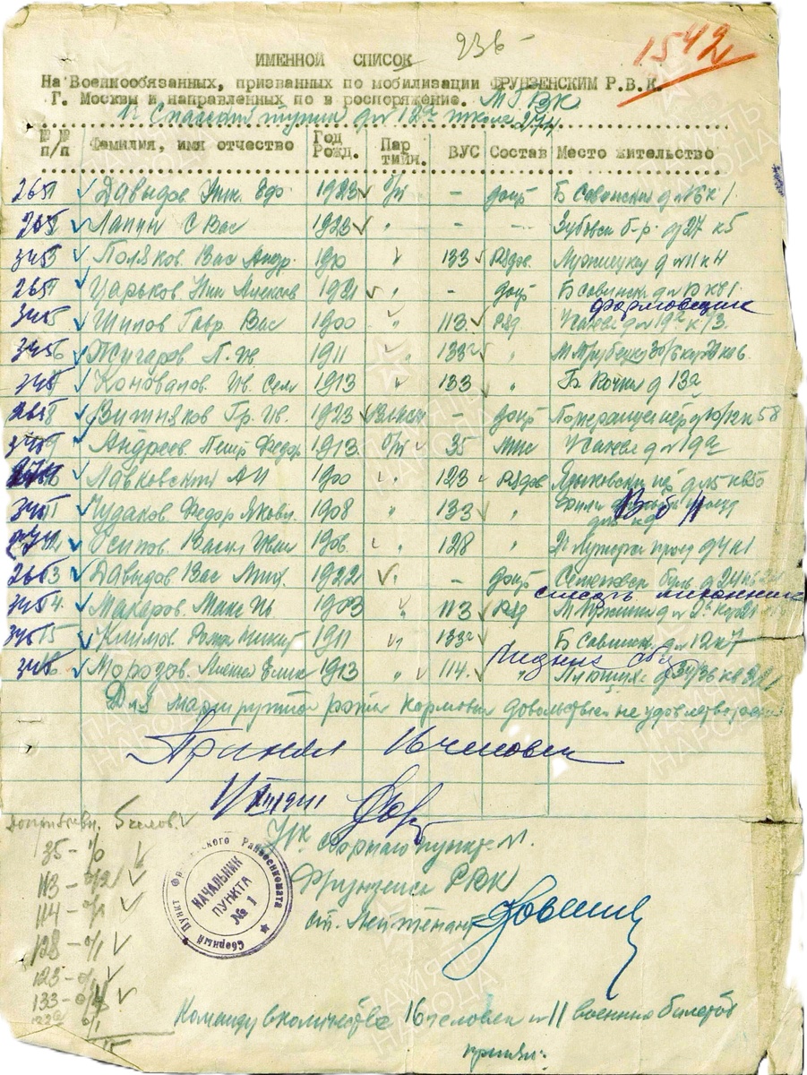 03.11.1941 он уже был призван по мобилизации Фрунзенским РВК г. Москвы.