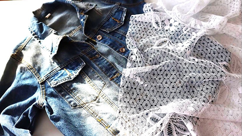 Люблю переделывать старые вещи, и каждый раз убеждаюсь: обновлять гардероб можно без крупных расходов. Иногда достаточно самой маленькой идеи, чтобы старая вещь заиграла по-новому. Переделка одежды — это не только способ сэкономить деньги, но и настоящий творческий процесс. И сегодня хочу рассказать, как преобразила обычную джинсовую курточку, причём без перешиваний, разрезов и сложных манипуляций. Понадобится только кусочек тюля. Тюль у меня самый обычный, хлопковый, ещё советских времён. Несмотря на возраст, он оказался крепким, целым и удивительно красивым. В конце концов, тюль — это почти кружево, а кружево всегда может добавить образу лёгкости и женственности. Так что тюль или кружево — выбирать вам, подойдёт любой вариант. Главная задумка в том, чтобы просто пришить тюль сверху, не меняя конструкцию самой куртки. Никаких разрезов, никаких сложных выкроек — только закрепление по швам. Сначала разложила курточку на столе, затем сверху приложила тюль. Когда всё выровняла, начала