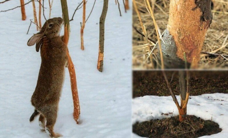 Зимой мыши-полевки и зайцы поедают кору деревьев и почки, в садах от этого особенно страдают молодые яблони, груши, сливы и вишни. Могут пострадать и кустарники, в том числе жимолость, жасмин. Особо опасно, если кора будет обглодана вкруговую – ствол погибнет. Как же защитить плодовые деревья от грызунов зимой? Необходимо сделать деревьям шубки из веток хвойных деревьев (лапника). Для этого стволы обвязывают лапником на высоту до 1 м, располагая ветви хвоей вниз. Укутать растения укрывным материалом, при этом весной необходимо вовремя снять защиту. Обвязать стволы специальной пластиковой сеткой для защиты от грызунов на высоту 50-70 см. Сетка не мешает растениям дышать, не нарушает циркуляцию воздуха, её можно использовать несколько лет подряд. Кроме того, нужно отпугнуть запахами. Разложите вокруг деревьев специальные отпугиватели или тряпочки, смоченные сильно пахнущими веществами, например, дегтем или креолином. Не используйте полиэтилен, под ним накапливается влага, и кора может со
