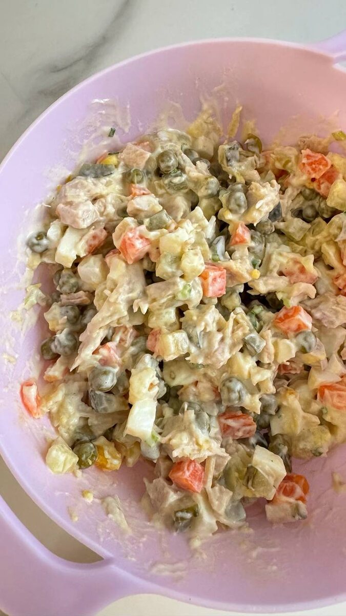 Настроение первого зимнего дня таково и больше никакаво. Репетиция новогоднего салата 😅 На самом деле, оливье с вареной куриной грудкой мне больше нравится, чем с колбасой. Частенько готовлю именно с мясом. И, кстати, на новогодний стол я никогда не делаю оливье, вот такой вот парадокс.