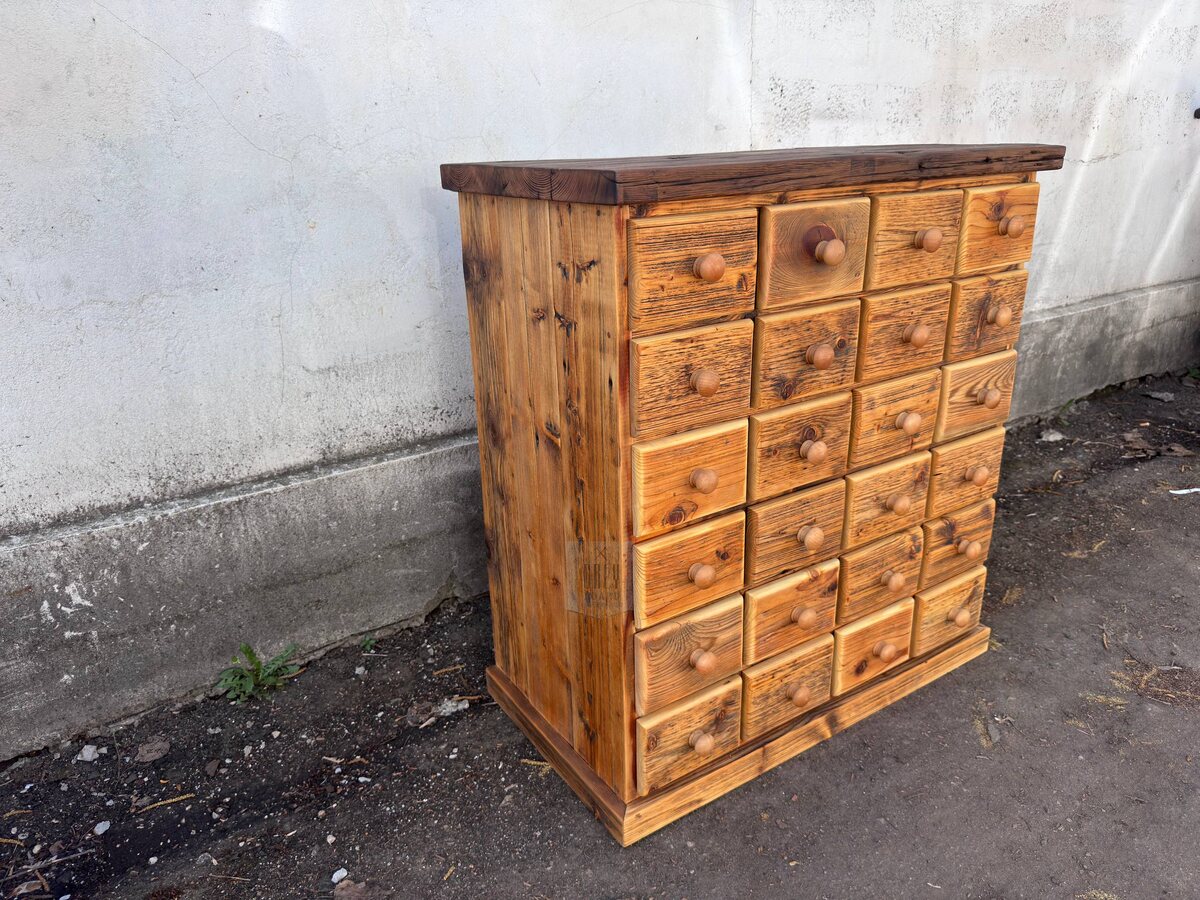 Аптекарская картотека / бюро / органайзер из старой сосны. Это идеальный комод для: • специй и трав на кухне • ниток, пуговиц и всякого рукодельного добра • винных пробок, открыток и мелочей, которые жалко выкинуть • инструмента в мастерской • носков и ремней и часов в спальне Каждый ящик на деревянных направляющих, ходит туго и честно, как в старые времена. Ручки — точёные, из той же доски. Один такой. Greyboard — мебель, которую уже прожила жизнь до тебя. #картотека #аптекарскийшкаф #стараясосна #уличнаядоска #мебельизстарогодерева #лофтмебель #комодизамбарнойдоски #greyboard #reclaimedpine #vintagecardcatalog #rusticfurniture #органайзер #мебельсисторией #индастриал #лофт #деревонабалконе #бюроиздерева