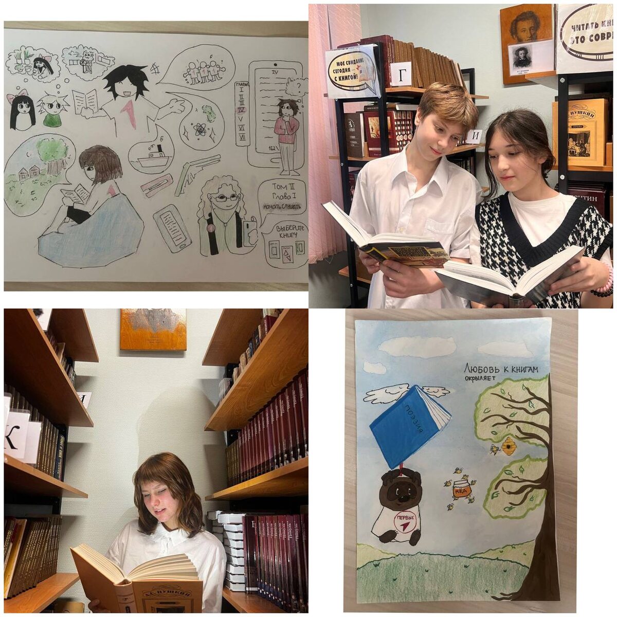 Ученики нашей школы стали участниками конкурса Движения Первых «Читаем с Первыми»! Конкурс предлагал участникам три направления для самовыражения. Каждый мог выбрать задание по душе и продемонстрировать свой уникальный взгляд на мир литературы. 📚Юные литераторы попробовали свои силы в создании уникальных произведений — рассказов и эссе на тему «Читаем с Первыми». В своих текстах они размышляли о первой в жизни прочитанной книге, которая открыла для них волшебный мир литературы. 📖Те, кто чувствовал себя художником, взялись за кисти и карандаши. Тематические иллюстрации, созданные ребятами, отражали глубокое понимание ценности чтения. На рисунках оживали сюжеты, посвященные книгам как источнику знаний и вдохновения. 📚Не остались в стороне и любители фотографии. Через объектив камеры они ловили самые искренние моменты погружения в чтение — как индивидуальные, так и коллективные. На снимках школьников можно было увидеть настоящие эмоции: заинтересованность, удивление, радость от открыт