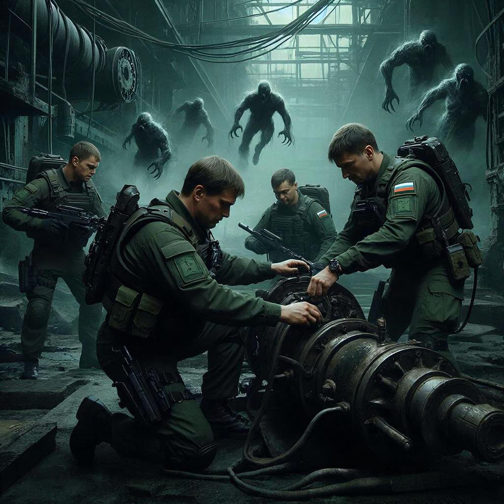 Двигаясь глубже, бойцы услышали голоса, зовущие их обратно. Страх охватывал их, заставлял сомневаться в собственных силах. Но дисциплина и профессионализм взяли верх. Достигнув цели, они увидели огромный механизм, излучавший зловещую энергию.