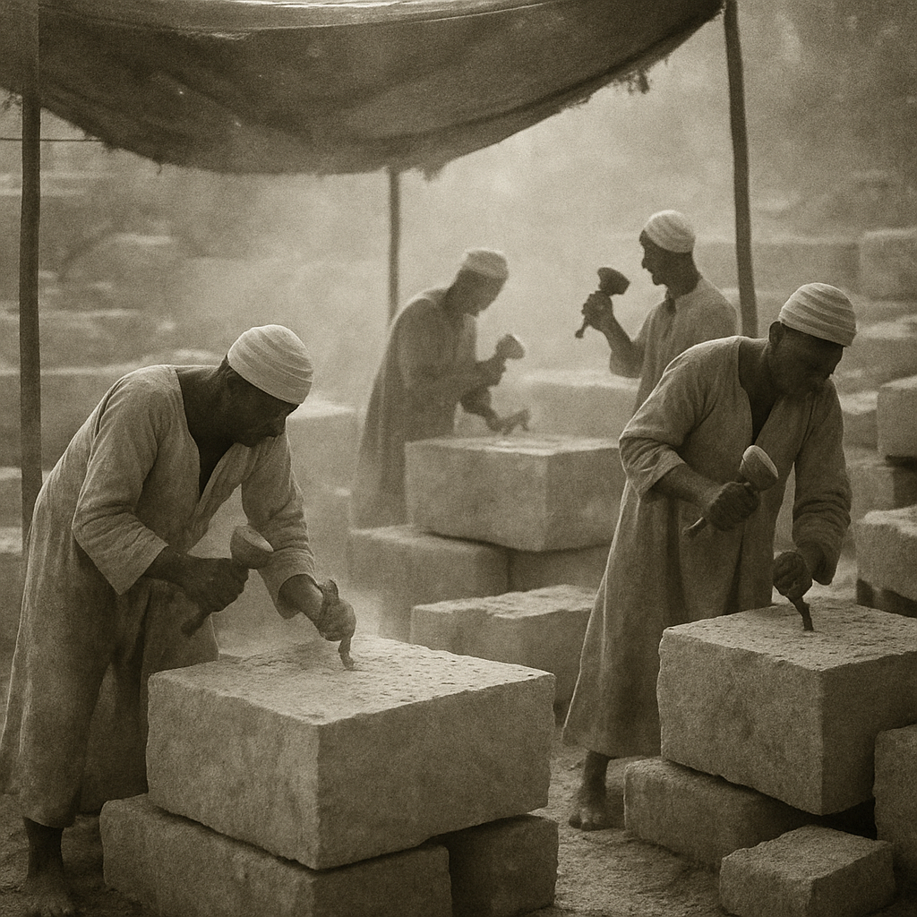 У древних каменщиков не было ни вентиляторов, ни вытяжек, но именно они заметили простейшую закономерность: если работать внутри помещения — кашляешь, слепнешь от пыли и живешь меньше. Если работать под навесом на улице — дышится легче, и работа идет чище.