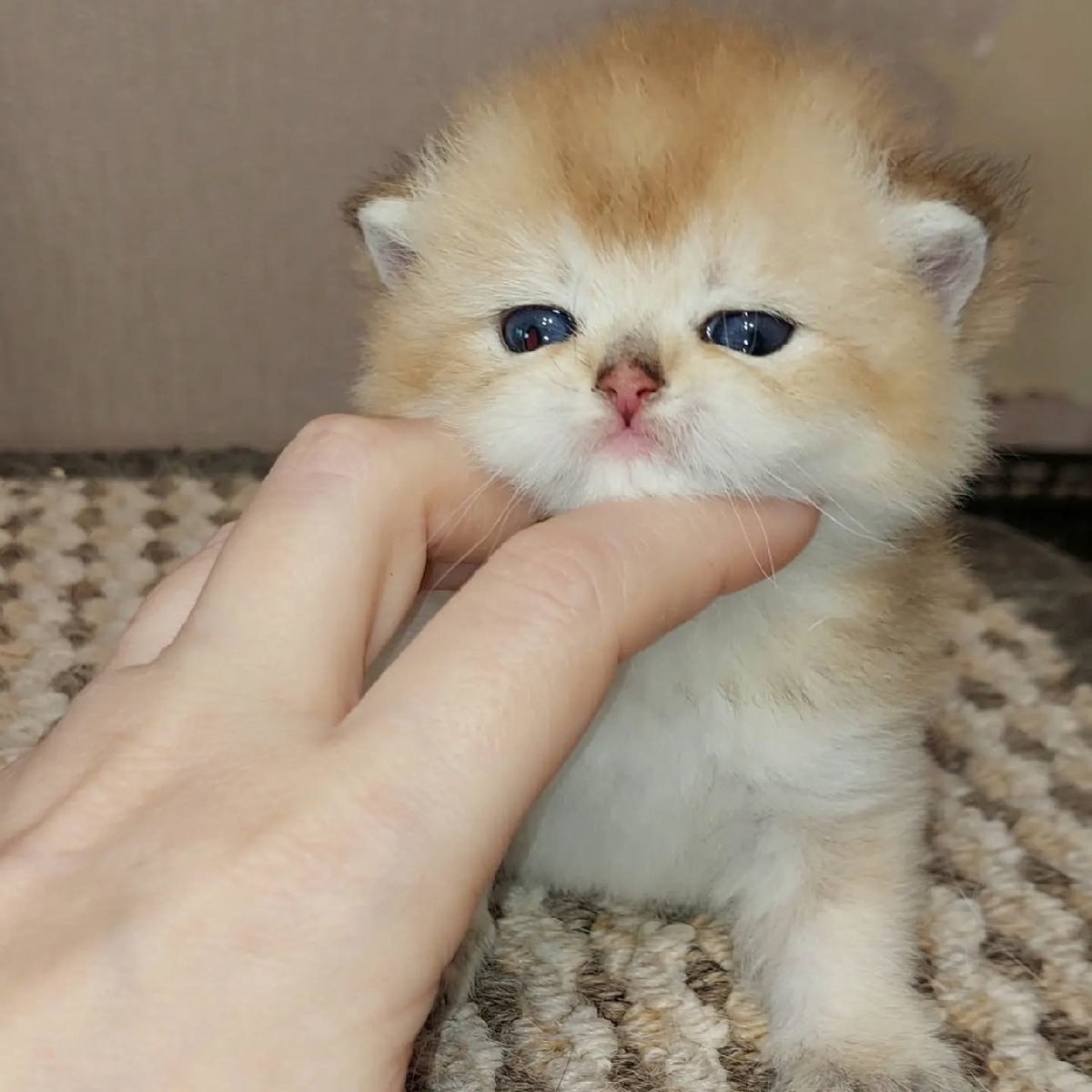 Маленькая звёздочка девочка британская золотая затушеванная ДГГ(DBE) . Пока не очень понимаю -синеглазая или разноглазая. 1 глаз подсвечивается лучше, другой хуже. Будем наблюдать:))