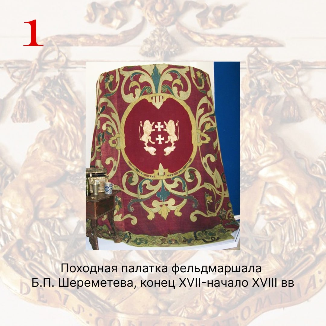 Легенда о прусском происхождении, львиные леопарды и графская корона Шереметевы – один из самых знатных, славных и древних родов в истории Отечества. Сегодня мы расскажем, как в течение 18 века менялся знак этого рода, переходя от отца к сыну. А прочитать подробную информацию о каждом предмете можно на недавно открывшейся онлайн-выставке от Музея Кусково — “Под графской короной”. ➡️ Борис Петрович Шереметев (1652-1719) – прославленный полководец и первый государственный деятель в истории России, получивший графское достоинство. Именно ему принадлежит заслуга появления фамильного герба как родового знака, символизирующего понятия чести и достоинства. За три века своего существования фамильный герб претерпел существенные изменения как во внешних атрибутах, так и в символическом значении своих геральдических элементов. Первое изображение герба Шереметевых появилось в 1695 г., когда издали труд П. Терлецкого «Слава героических дел ясновельможного пана Бориса Петровича Шереметы». В это