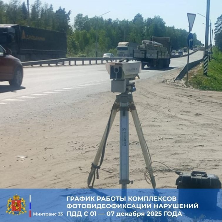 В период с 01.12.2025 по 07.12.2025 передвижные комплексы фотовидеофиксации будут размещены на следующих участках автодорог: - а/д М-7 «Волга» 103 км; - а/д М-7 «Волга» 116 км; - а/д М-7 «Волга» 181 км; - а/д Р-132 «Золотое кольцо» западное соединение с а/д М-7 «Волга» 10 км; - а/д Р-132 «Золотое кольцо» западное соединение с а/д М-7 «Волга» 13 км; - г. Владимир, Судогодское шоссе, д. 81 - а/д Р-132 восточное соединение с а/д М-7 «Волга» 18 км; - а/д Р-132 восточное соединение с а/д М-7 «Волга» 20 км; - а/д Р-132 восточное соединение с а/д М-7 «Волга» 26 км; - а/д Р-132 «Золотое кольцо» 316 км; - а/д Р-132 «Золотое кольцо» 317 км; - а/д Владимир-Муром-Арзамас 116 км; - а/д Хохлово-Камешково-Ручей 9 км; - а/д Хохлово-Камешково-Ручей 42 км; - а/д Колокша-Кольчугино-Александров-В. Дворики в черте г. Александров (ул. Кольчугинская, д. 57); - а/д Малышево-Красная Горбатка 21 км; - а/д Владимир-Юрьев-Польский-Переславль-Залесский 8 к Показать полностью... Подари звезду на пост - это час