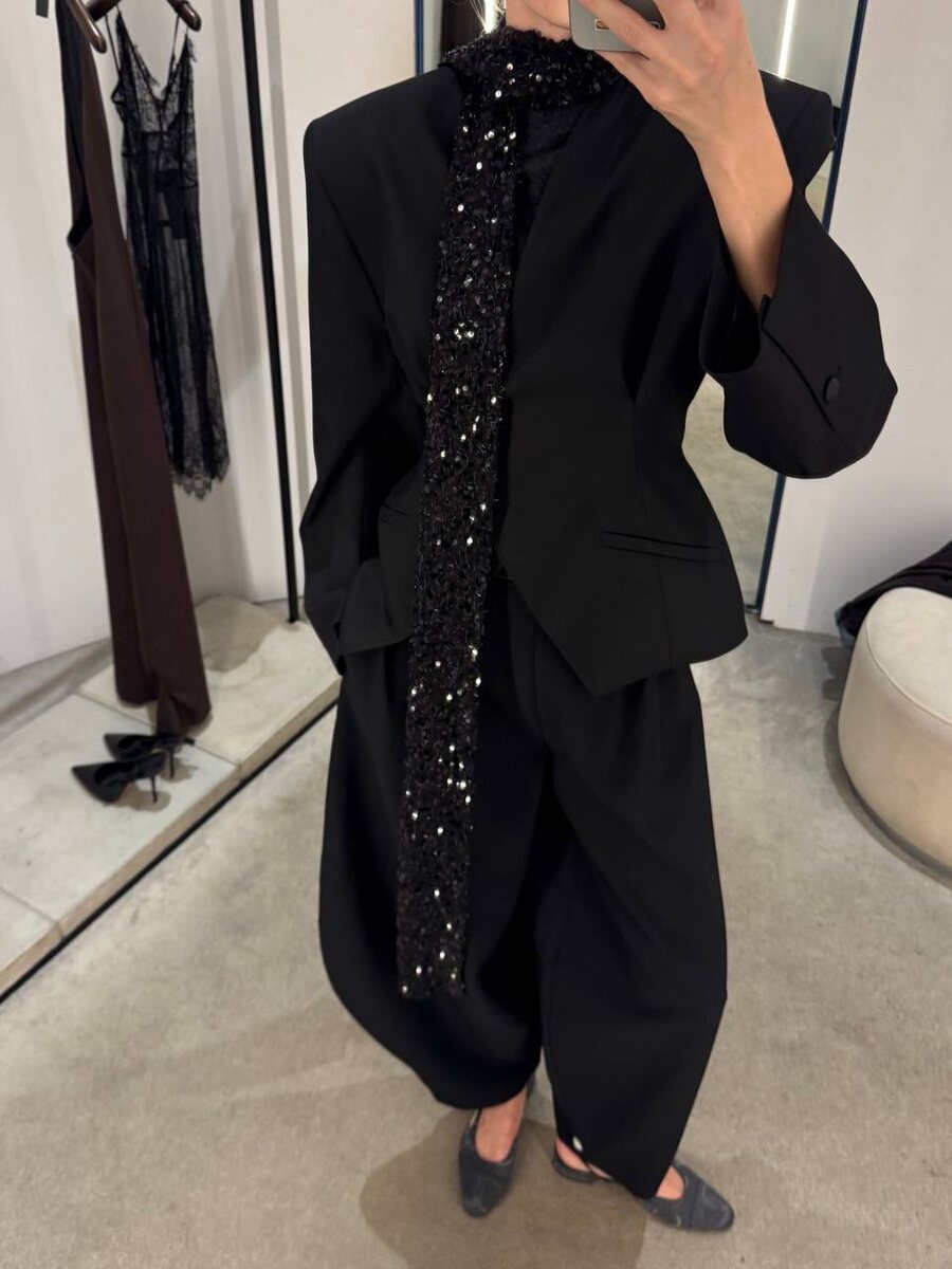 Можно создать роскошный вечерний образ, используя ваш деловой костюм 🤍 Всё решает стилизация! Добавьте к костюму аксессуары, создающие настроение: - шарфы в пайетку - нарядный клатч - крупные серьги - блестящие туфли - боа из перьев и тд Примеры аксессуаров: Клатч Love Republic, 5599 Колье Lime, 3999 Клатч Lime, 5999 Шапочка Lime, 2999 Серьги Poison drop, 6200 Серьги MIE, 12900 Клатч Eclata, 6900 Босоножки Lime, 10999 Шарф Befree, 899