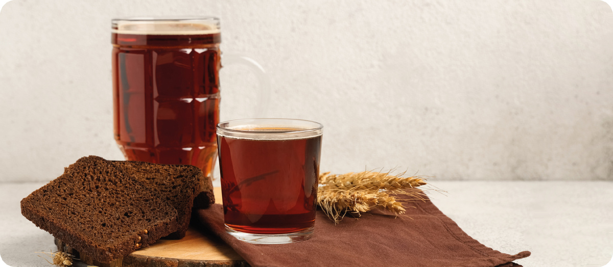 Квас – это слабоалкогольный напиток, получаемый в результате молочнокислого и спиртового брожения. Традиционно его готовят из ржаного или пшеничного хлеба, солодового экстракта, сахара и воды. В процессе брожения образуются органические кислоты, витамины группы B, углекислый газ и до 1,2% этилового спирта.