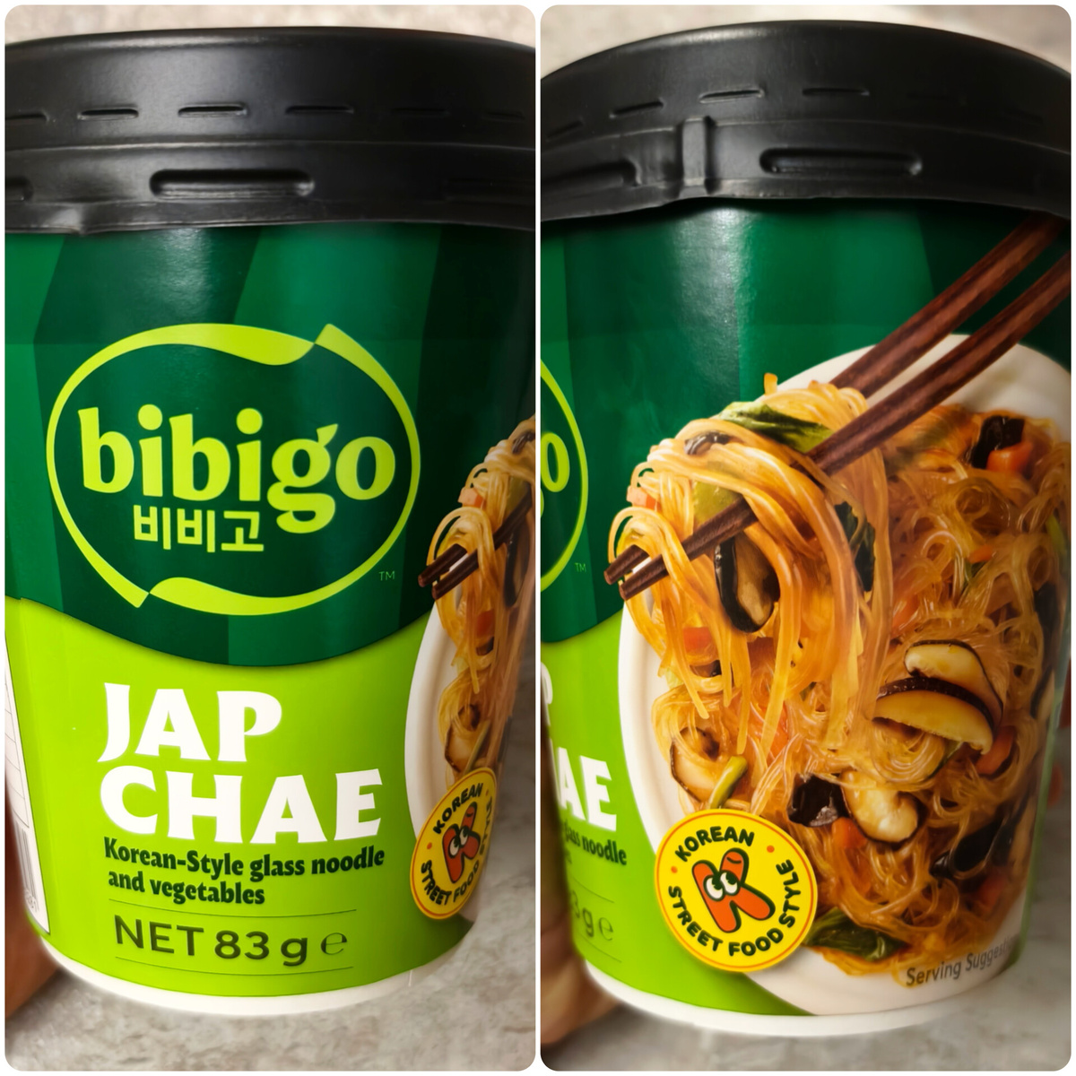 Всем привет! Чапче - это корейская закуска из крахмалистой лапши с овощами, грибами и мясом, заправленная соевым соусом и кунжутным маслом. Что-то похожее я уже пробовал много раз, но то что это чапче не знал. Купил в Магните за 229 рублей. Масса 83 грамма. Стакан большой, а по факту пустой почти. От Бибиго я уже пробовал различную корейскую еду, приложу ссылки на обзоры. Лапша изготовлена в Китае. Китайский бренд корейской еды. В составе лапша из картофельного крахмала и крахмала из бобов мунг. Соус на основе соевого соуса. Сушеные овощи: капуста бок-чой, морковь, грибы (шиитаке, древесные), а также соевое мясо. Ну и кунжутное масло. В принципе, набор ингредиентов позволяет приготовить оригинальное чапче. Разве что, мясо тут из соевого белка. За такую цену могли бы сублимированное добавить. Вот и комплект. Стеклянная лапша, сушеные овощи, соус и кунжутное масло. Вилки в комплекте нету. Закладываю вермишель и овощи. Овощей достаточно много. Через 4 минуты необходимо слить вод