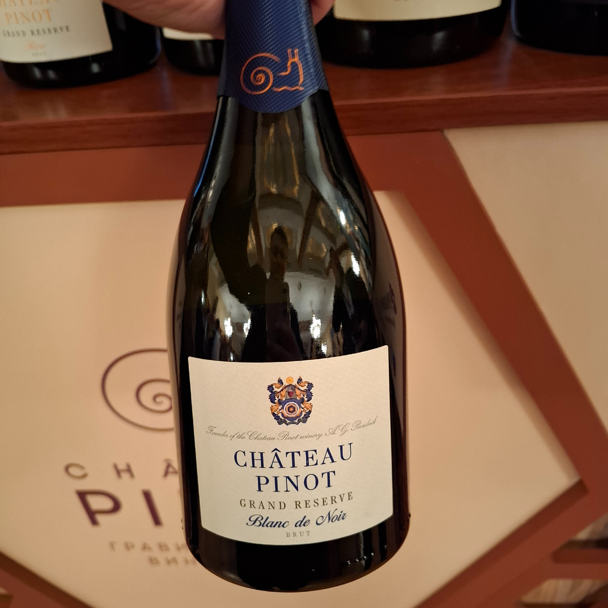 В преддверии самого Нового года, самого игристого периода в мире вина, все больше новинок выходит в продажу. Шато Пино не остались в стороне. Винодельня, когда взорвавшая рынок своими Пет Натами, в остальных категориях выступила не так ярко. Правда, из других категорий, у них в портфолио есть еще только одна – классические игристые. Акратофоров винодельня не держит, да и, видимо, уже и не поставит, не по статусу будут они смотреться. Так что следующая презентация игристых – это Grand Reserve. Этикетка этого игристого прямо кричит о том, что относится оно к ультра-премиальной линейке винодельни – Поездник. Получившей имя в честь создателя винодельни. Пока что официальный сайт не дает информации про эти игристые, но я с вами ей поделюсь. Blanc de Noir Grand Reserve2021, ЗГУ Кубань, брют, белое, Каберне Совиньон / Каберне Фран, алкоголь 12%, розлив 20. 10. 2025. Шато Пино, винодельня расположенная на живописных прибрежных склонах в селе Федотовка. Аккурат с противоположной от винодельни