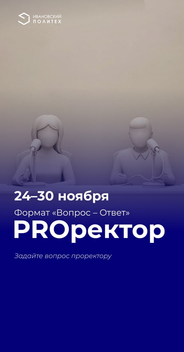 Медиапроект «PROректор» Еженедельно мы публикуем интервью с нашими проректорами, где они рассказывают о том, что важного, по их мнению, произошло за неделю и отвечают на вопросы студентов. 👉Полный текст интервью читайте на нашем сайте 💬 А мы напоминаем, что свои вопросы проректорам вы можете написать нам в личные сообщения канала👇 #PROректор@ivgpu 👻 ИВГПУ в MAX | 📲 ИВГПУ в ВК