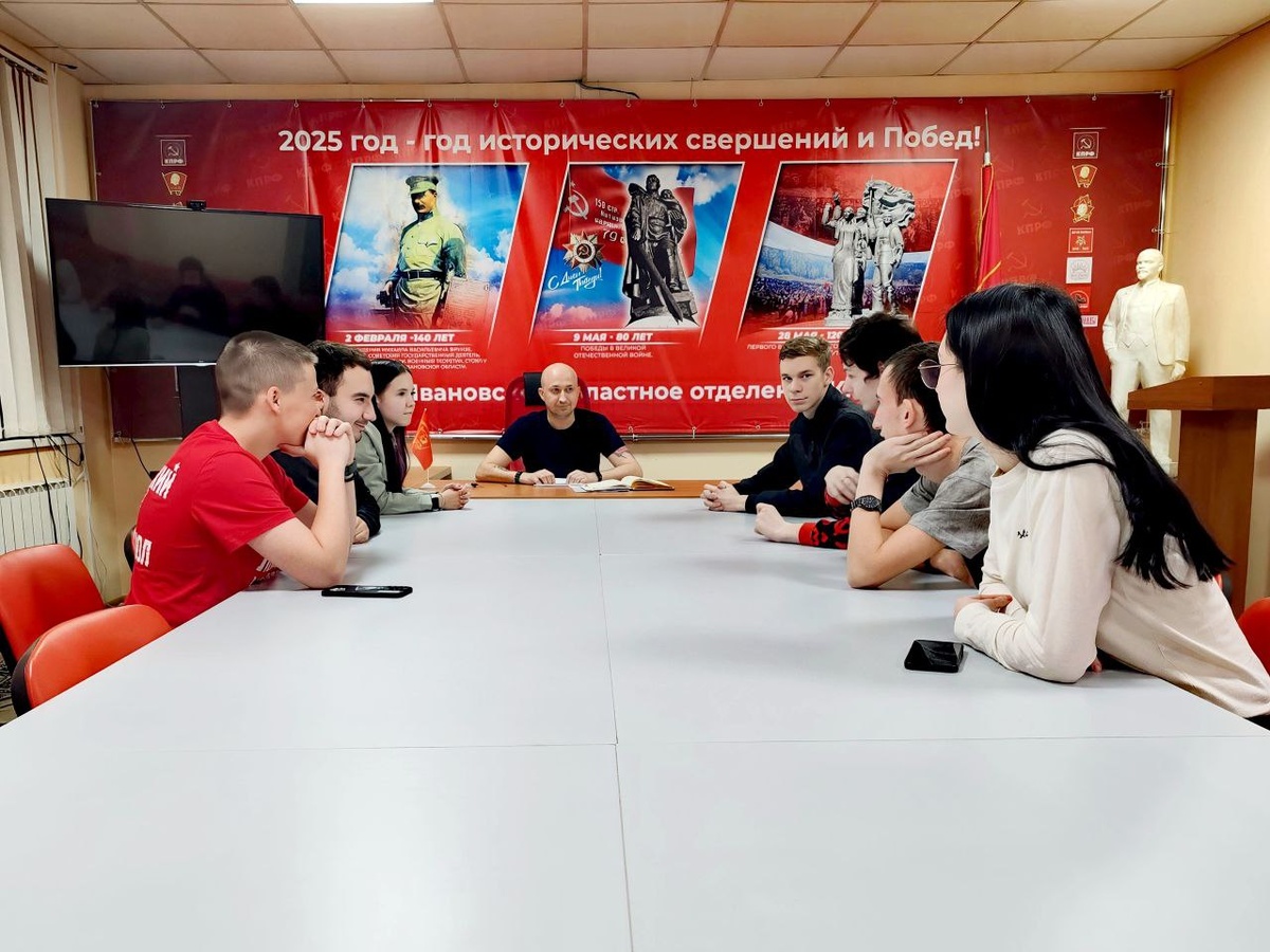 ИВАНОВСКИЕ КОМСОМОЛЬЦЫ ПРОВЕЛИ ОЧЕРЕДНОЕ БЮРО Ивановские комсомольцы провели очередное заседание Бюро Комитета Ивановского областного отделения ЛКСМ РФ. Открыл и вёл собрание первый секретарь Ленинского комсомола Ивановской области Александр Коротков. Первым вопросом ребята рассмотрели и утвердили заявления новых товарищей на вступление в Ленинский комсомол. Ленинская молодёжная организация планомерно растёт и крепнет, в строй встают борцы за социалистическое будущее страны! Основной тематикой прошедшего собрания стали отчёты комсомольцев, ответственных по конкретным направлениям работы организации. По итогам которых после активных обсуждений, были выработаны соответствующие планы дальнейшей деятельности. Особое внимание комсомольцы уделили ходу реализации на территории Ивановской области Народного референдума КПРФ и необходимости более активного персонального участия в сборе мнений жителей региона. Пресс-служба Ивановского обкома ЛКСМ РФ