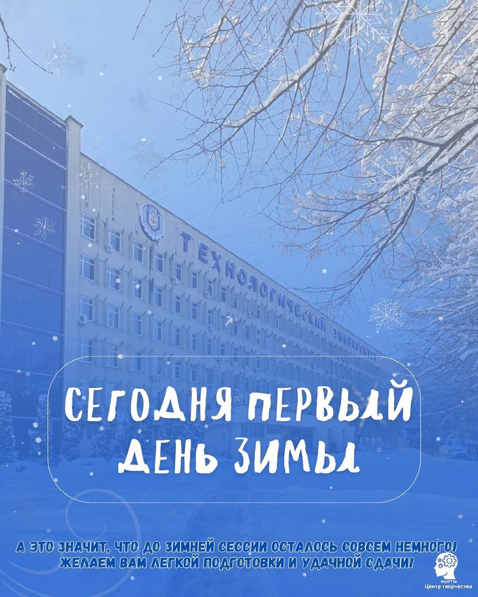 ❄️ Первый день зимы ❄️ Сегодня зима делает первый шаг — тихий, свежий и вдохновляющий. В Центре Творчества мы верим, что даже в самые загруженные дни можно находить пространство для идей и самовыражения. Тем, кто готовится к сессии, желаем спокойствия, сосредоточенности и вдохновения. Пусть маленькие творческие паузы делают ваши дни теплее и легче. Эта зима обещает быть яркой — будем творить её вместе! ✨ Подписаться на Центр Творчества: 📱 Телеграм 📱 ВК #ЦентрТворчестваКубГТУ #КубГТУм #КубГТУ #КубанскийПолитех