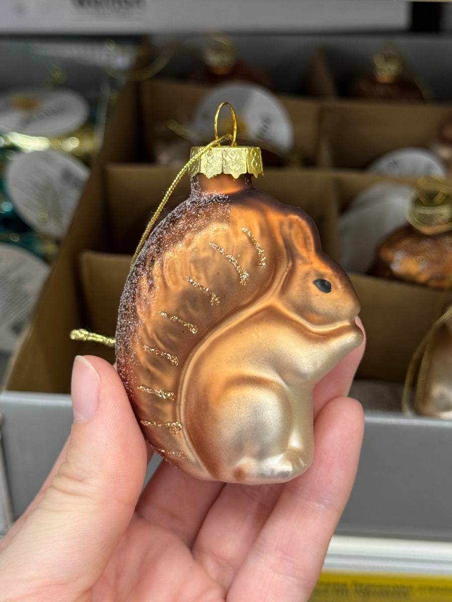 Всем привет! Не знаю как вы, а я просто обожаю елочные игрушки. Уже не первый год нахожу классные варианты в супермаркетах, в Семейном Магните например. В этом году там тоже очень хороший выбор. Показываю, что мне понравилось больше всего. Буду рада, если вы оцените эту статью и подпишитесь. Телеграм: подписаться Яндекс Дзен: подписаться Некоторые игрушки повторяются, точно такие же продавались и в прошлом году. Например, эта милая серия с животными. Это небольшие игрушки из стекла. Или, например, эти птички и большие шишки. Но большая часть игрушек все же новые, так что посмотреть точно есть на что. Из нового - пчелки! Ооочень мне понравились. Но они довольно крупные - 8 см. Для моей елки высотой 160 см больше подходят игрушки поменьше. Но возможно я еще вернусь за пчелкой, она классная! Еще меня удивило количество елочных игрушек на морскую тематику: звезды, ракушки, рыбы и черепахи. Такого в моей коллекции еще не было, купила черепаху! Фруктов и овощей в этот раз не так уж много,