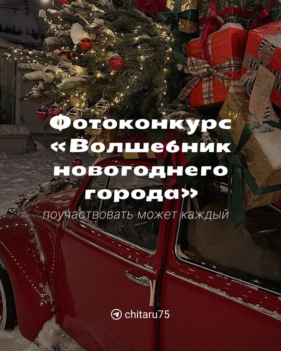 Объявляем старт масштабного конкурса для всех читинцев. В этом году @chita.ru совместно с мэрией снова проводит фотоконкурс на лучшее украшение практически всего. Дома, квартиры, окна, балконы, праздничные столы, игрушки, рабочие места и многое другое — фотографы-любители могут участвовать сразу в нескольких номинациях. В этом году конкурс будет называться «Волшебник новогоднего города». В Чите он будет проходить уже в третий раз. @chita.ru второй год подряд присоединяется к администрации и сейчас активно ищет партнеров, которые захотят поддержать конкурс. В прошлом году победители получили сертификаты на бытовую технику и призы от партнеров. Если вы представляете организацию и хотите поддержать нашу инициативу, пишите на почту reklamachita@shkulev.ru или в тг-чат @shkulev_social_media_gp_bot. ➡️ Поучаствовать в конкурсе может любой — номинаций на выбор очень много. Победители будут получать награды из рук чиновников и первых лиц города на главной сцене площади Ленина. Отбор фото
