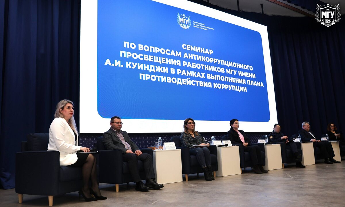 Почему коррупция — зло? 🤩Для сотрудников МГУ имени А.И. Куинджи прошел семинар по вопросам антикоррупционного просвещения работников университета в рамках выполнения плана противодействия коррупции. 📎С приветственным словом к участникам обратилась проректор по молодежной политике, социально-воспитательной работе и безопасности МГУ имени А.И. Куинджи Наталья Валериевна Иванюта. Она подчеркнула значимость мероприятия, а также отметила необходимость соблюдения принципов честности и прозрачности в деятельности университета. В качестве докладчиков выступили: 🟡Инесса Игоревна Бодягина — нотариус Нотариальной палаты ДНР, председатель Мариупольского отделения Регионального отделения Ассоциации юристов России в ДНР, преподаватель кафедры государственного управления и права факультета экономики, управления и права МГУ имени А.И. Куинджи; 🟡сотрудник ФКУ «Исправительная колония №13 Главного управления федеральной службы исполнения наказаний по ДНР»; 🟡Регина Ажимуратовна Шидакова — главный
