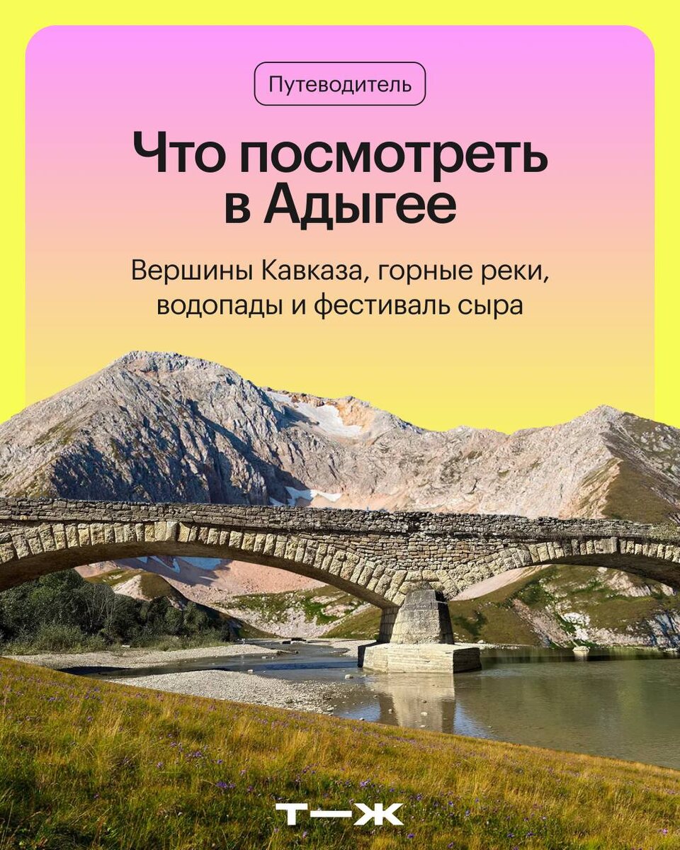 Республика Адыгея — это: 🏔️ Снежные шапки кавказских гор и луга, как в Альпах 🏞️ Реки, пещеры и живописные горные водопады 🧀 Фестиваль сыра, на котором в прошлом году сделали самый длинный в России сыр «косичку» Собрали красоты региона в одной статье и рассказали, как рассчитать время на достопримечательности и вкусно поесть: 🟩 Наш путеводитель по Адыгее