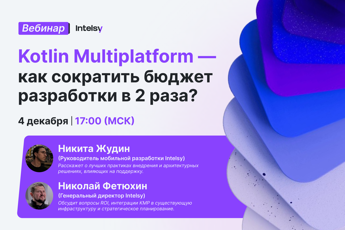 📅 Дата: 4 декабря ⏰ Время: 17:00 (МСК) На этом вебинаре мы не будем глубоко погружаться в код. Мы сфокусируемся на финансовой стороне и стратегических преимуществах Kotlin Multiplatform (KMP) 🎯 Ключевые вопросы для бизнеса: ✔️ Экономия: снижение затрат на 40–60% благодаря единой логике для всех платформ. ✔️ Скорость: фичи выходят одновременно на iOS и Android, time-to-market сокращается. ✔️ Унификация: KMP + Compose = один стек для мобильных, десктопа и веба. ✔️ Масштабирование: запуск на новые платформы с минимальными вложениями. ✔️ Выгода: дешевле и надёжнее в долгосрочной поддержке, чем Flutter и React Native. 🛠 Ведущие: 👤 Никита Жудин (Руководитель мобильной разработки Intelsy): Расскажет о лучших практиках внедрения и архитектурных решениях, влияющих на поддержку. 👤 Николай Фетюхин (Генеральный директор Intelsy): Обсудит вопросы ROI, интеграции KMP в существующую инфраструктуру и стратегическое планирование. ✅ Этот вебинар для: Предпринимателей и СЕО, ищущих пути повышения