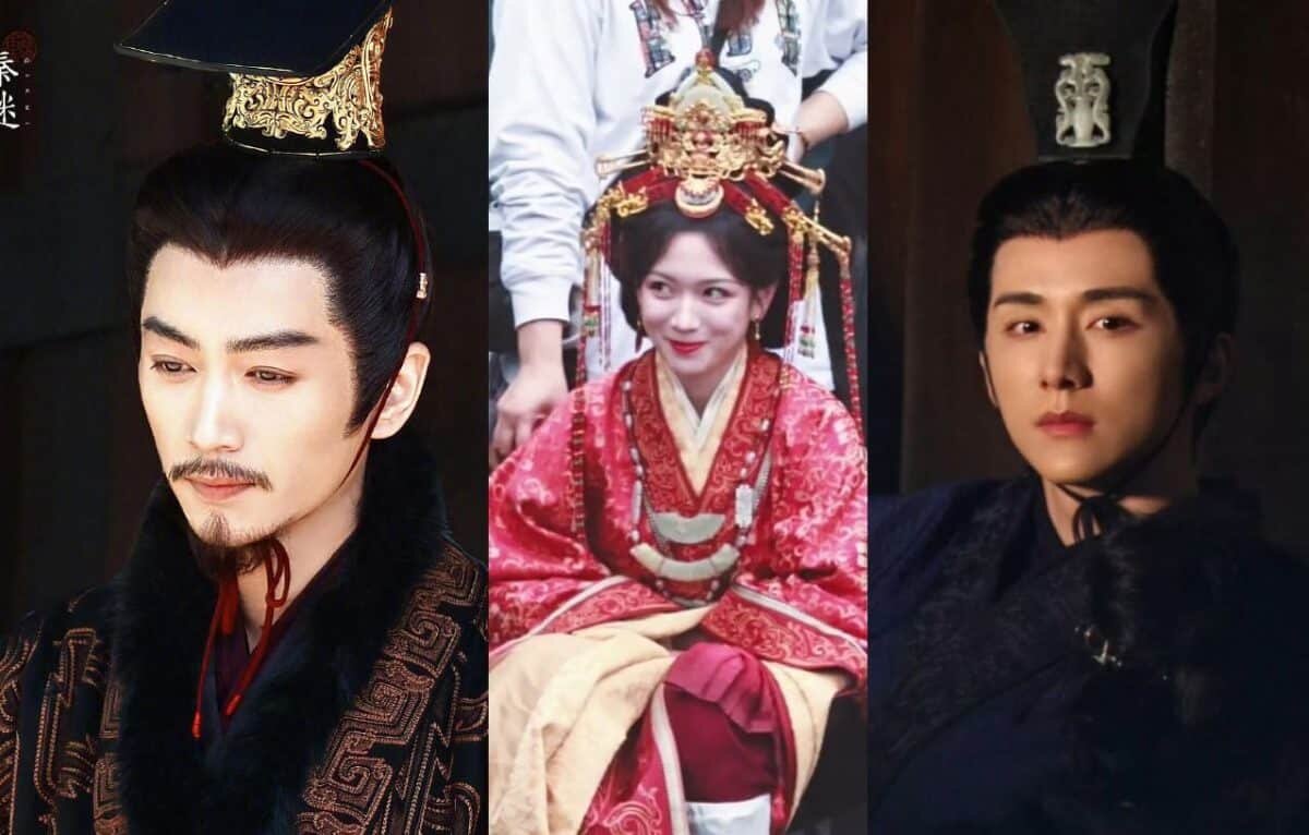 Чэнь Сяо, Дай Лу Ва и Чжан Синь Чэн в костюмах эпохи Цинь на съёмках новой дорамы