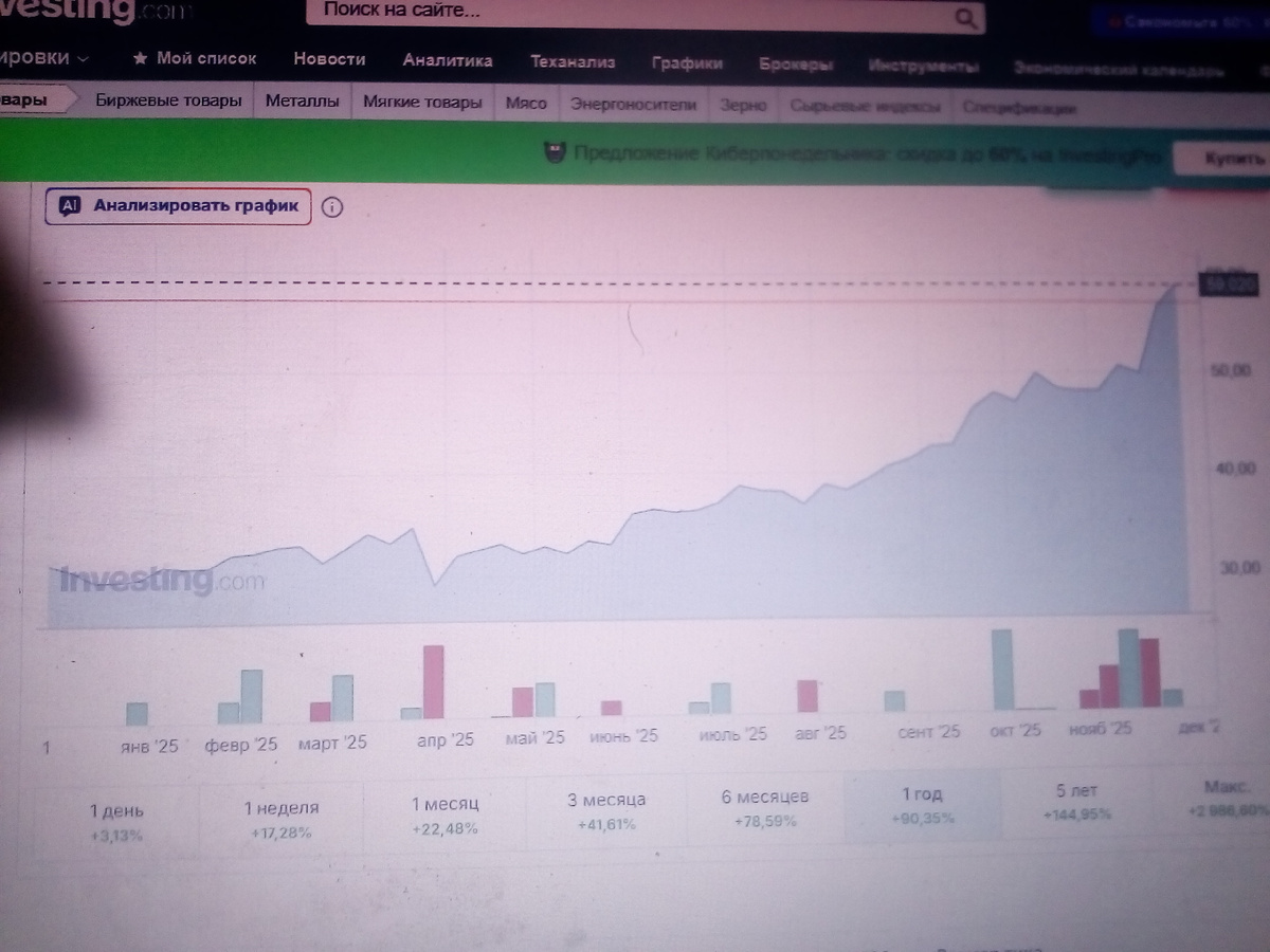 пс Серебро за год выросло в два раза... С 29 до 59 долларов за унцию...