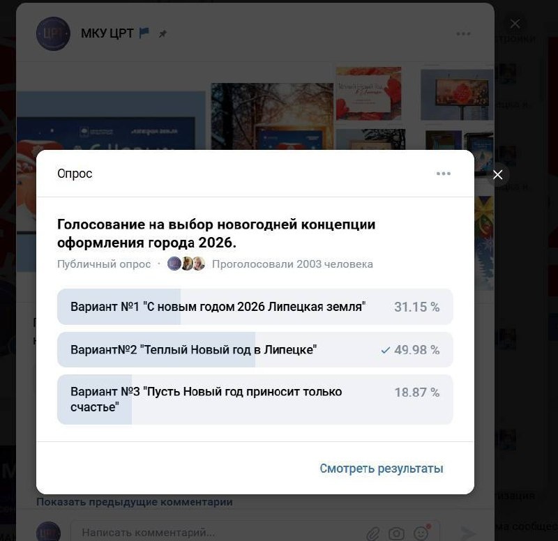В Липецке подвели итоги голосования за лучшее новогоднее оформление. С большим отрывом победила концепция №2 — «Тёплый Новый год в Липецке!». Авторы идеи — дизайнеры студии «Первый номер» Дарья Чалых, Диана Хитрова и Яна Гончарова. В ближайшее время город начнут украшать по выбранной жителями концепции.