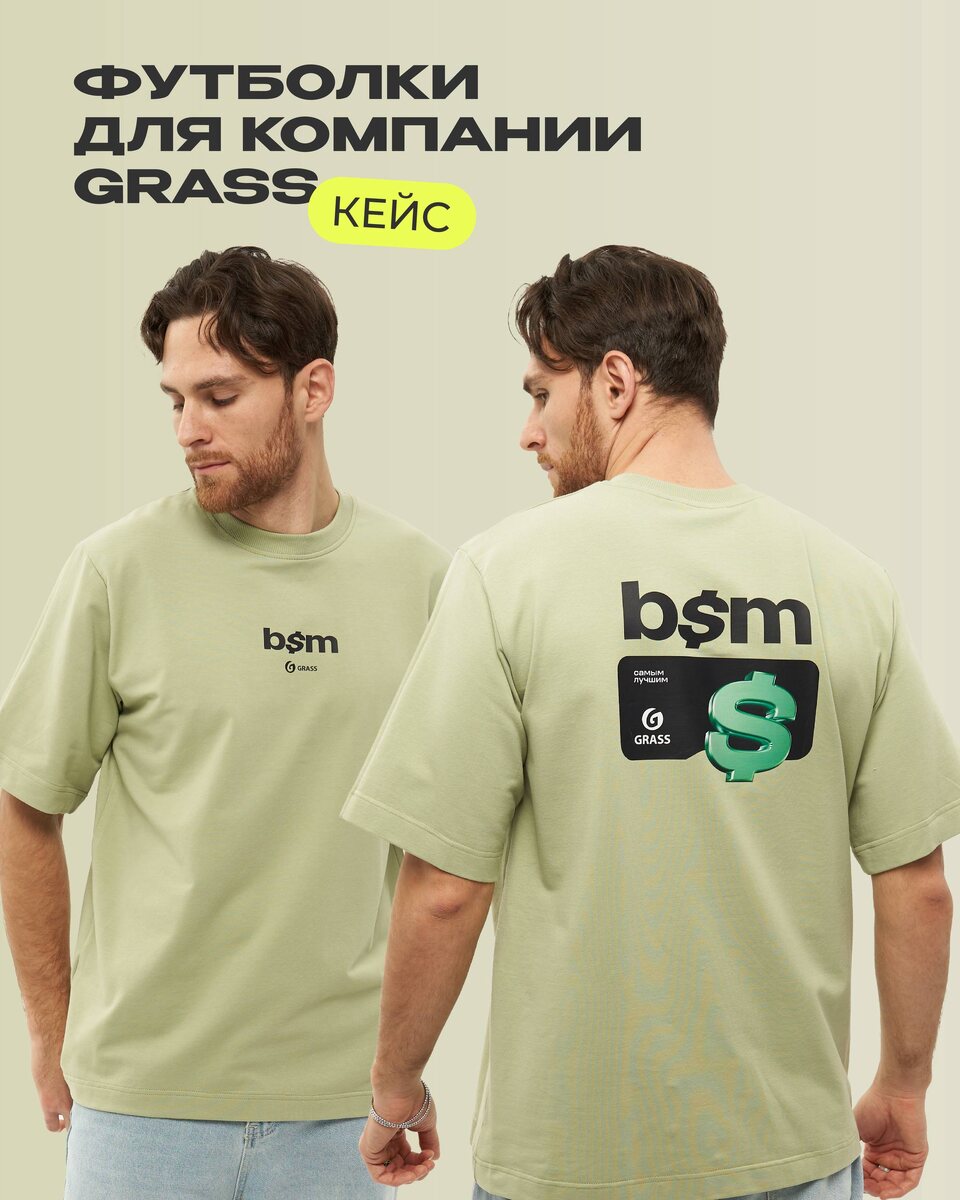 Изготовили брендированные футболки для компании GRASS в фирменном цвете. Хотите изготовить собственный мерч? Напишите нам и менеджер сделает для Вас просчет партии. #кейсKOSH