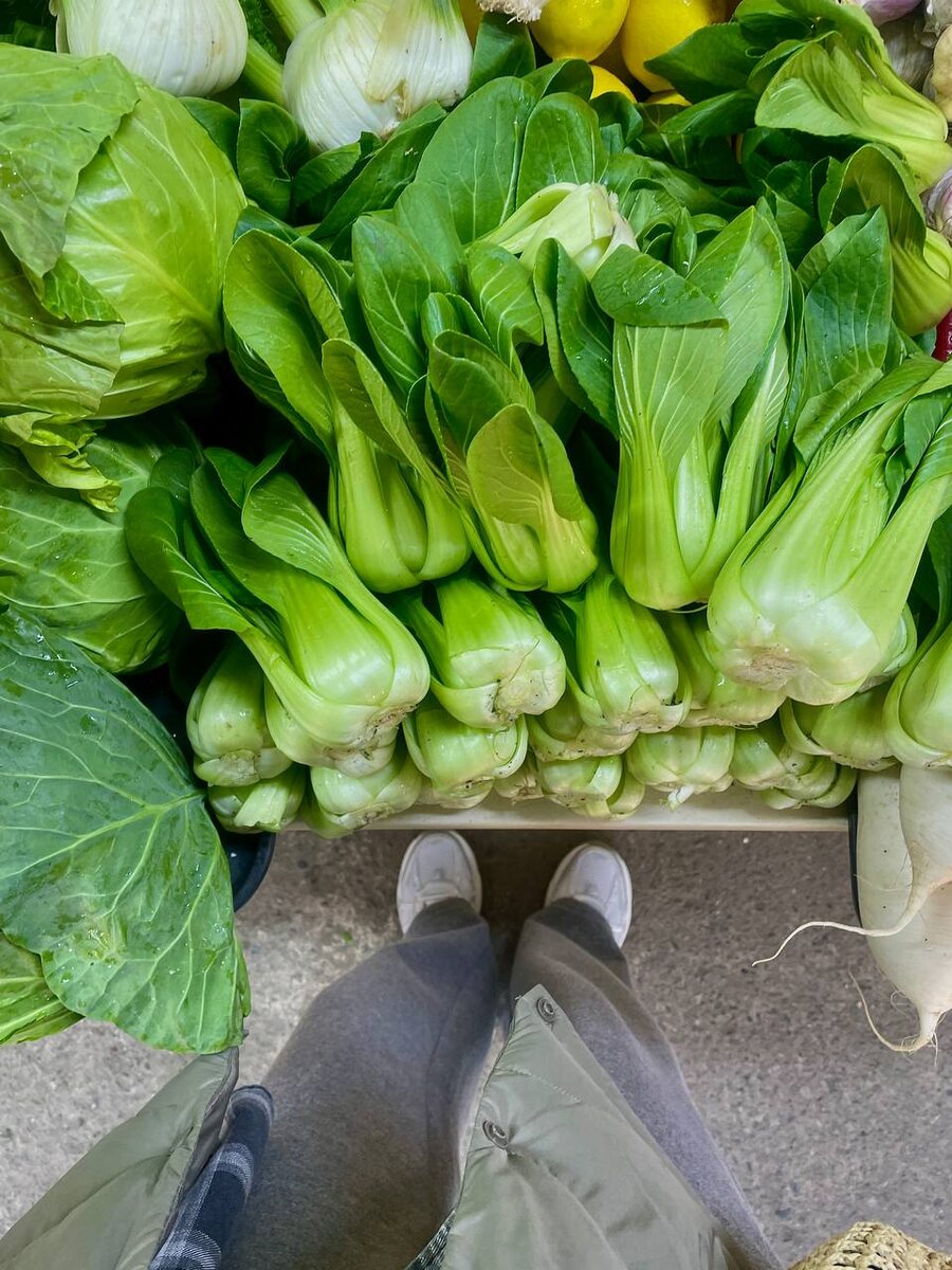 Ярмарка на выходных порадовала изобилием зелени🥬 Мой улов: • бок-чой (мне нравится он в свежем виде, хрустящий и очень свежий сочный вкус, можно также припустить с соевым соусом и кунжутом на сковороде на среднем огне) • фенхель (я пока присматриваюсь к нему) • сельдерей (добавляю в бульон, салаты, при тушении овощей и гарниров) • молодая капуста (идеально для витаминного салата из капусты и моркови) • базилик (любимый песто) • петрушка, укроп, кинза (классика) • мята (добавляю в салаты, в некоторые горячие блюда, еще очень люблю заваривать несколько листиков горячей водой и пить) • микрозелень (очень мне нравится ее терпкость и выглядит очень красиво) • шпинат (последнее время люблю его припустить немного на сковороде, буквально несколько минут, добавить соль, масло и перец 👌🏻, также для смузи в свежем виде идеально, для соусов, особенно люблю с чечевицей или в карри) • лук порей (для разнообразия) • свежие ароматные лимоны • орехи (всегда у меня дома они есть: для молока, муки,