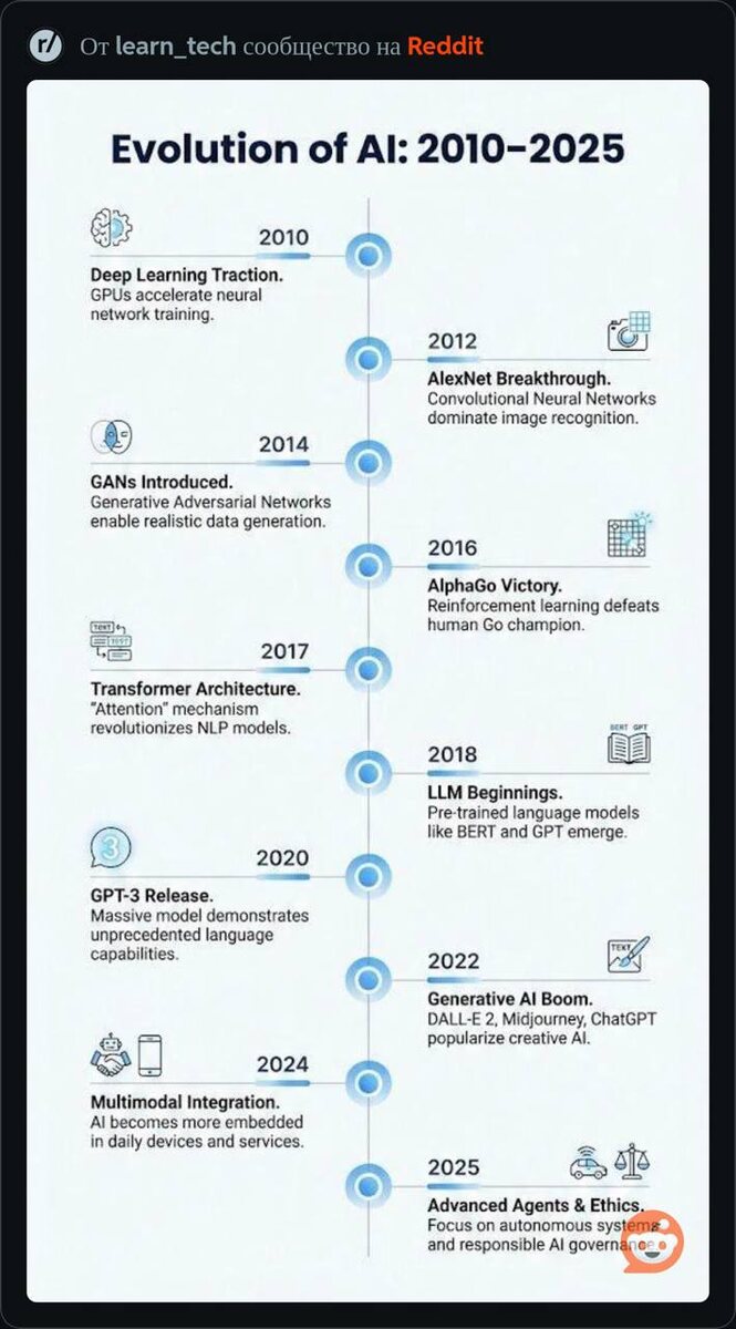 Эволюция ИИ. Крупными мазками. Интересно прикинуть, что будет к 2030 году… скорость изменений фантастическая.
