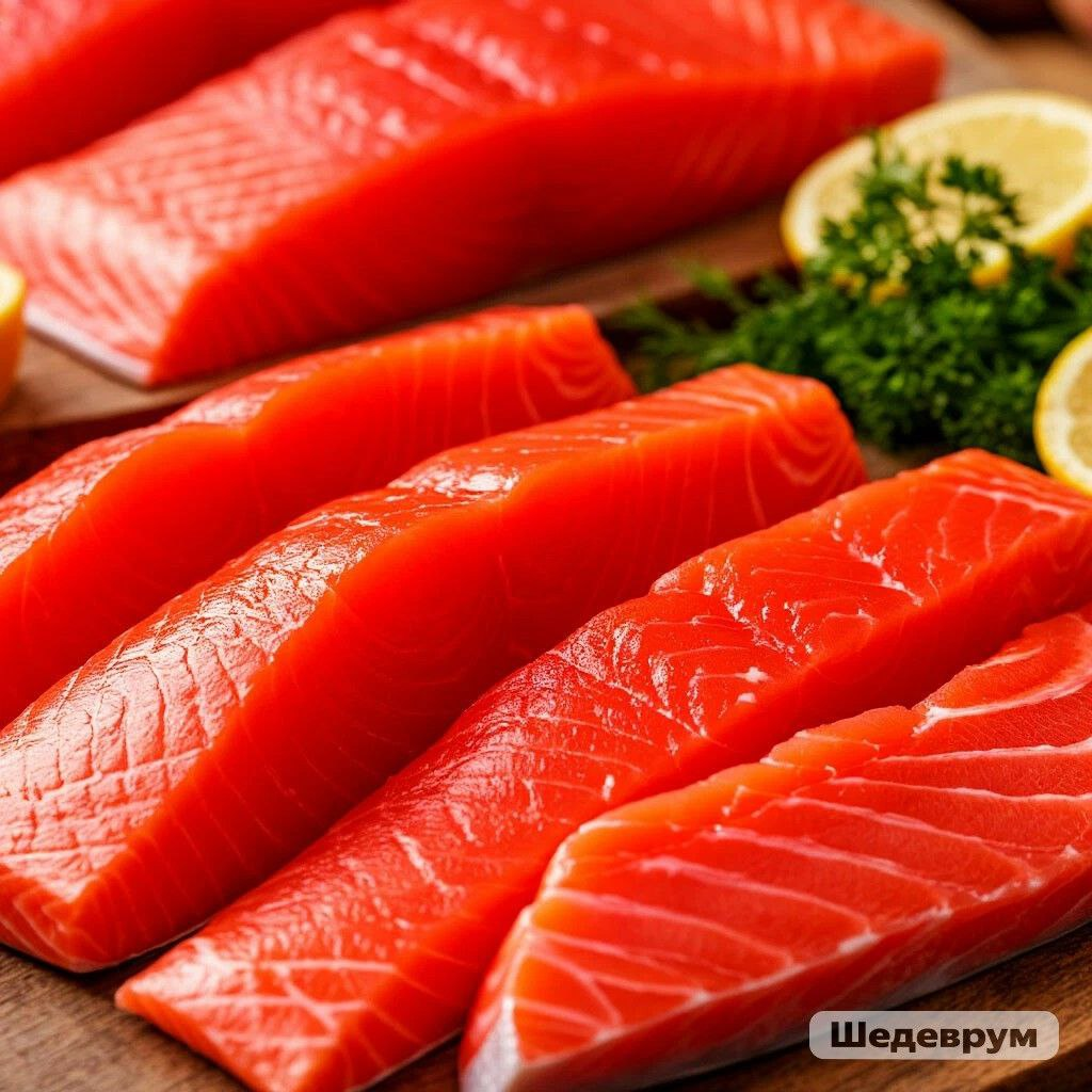 Лосось - один из самых популярных видов красной рыбы благодаря высокому содержанию жирных кислот омега-3 и исключительному вкусу. Лосось имеет достаточно плотное мясо, которое отлично сохраняет сочность при правильном приготовлении. Оптимальное время запекания лосося составляет 15-20 минут при температуре 180°C.