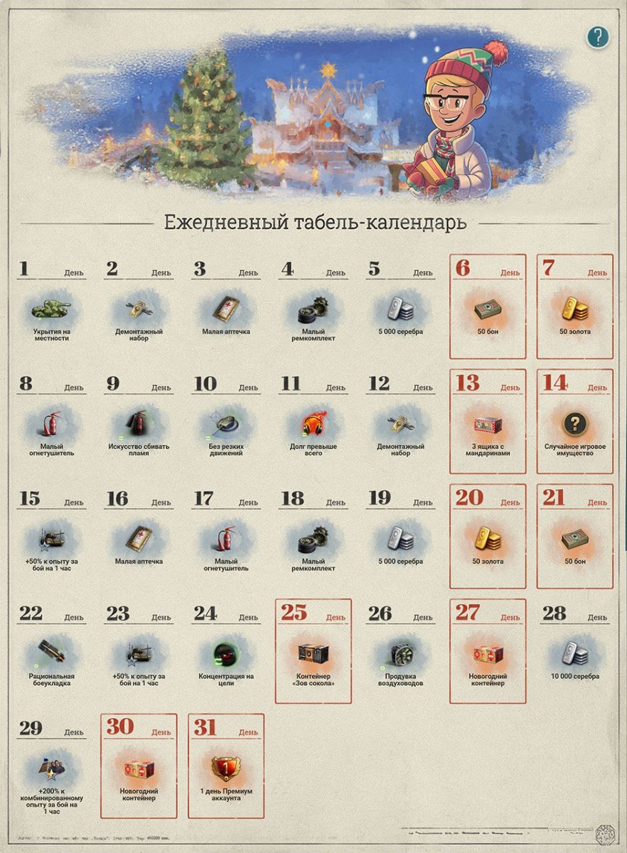 Табель-календарь на декабрь... ❗️ Для того, чтобы награда была доставлена, необходимо ее забрать в табель-календаре и обязательно зайти в клиент игры. Если вы забрали награду в календаре, но не зашли в игру до 3:00 (МСК) следующего дня, награда не будет доставлена. Пока вы её не заберёте, награда следующего дня не откроется. #миртанков