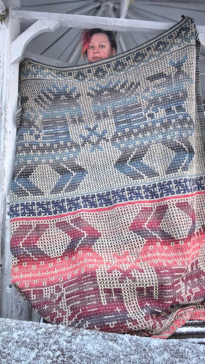 Коняшка с птицей и Дундага. Новости наших чатов Я следила за этим чудесным проектом в чате «Дундага в мозаике» – если вы любите эту пряжу и хотите экспериментов, то приходите в этот чат. Так вот Наташа пустилась в авантюру с коняшками и держала всех в радостном предвкушении, показывая, как растет плед. Там были свои неожиданности, но тем увлекательнее. Наташа, спасибо за азарт! Наташа: «Готовы мои Коники! Ушло на них ровно два месяца, но это отвлекаясь на худи мужу и мелкие проекты. Дундага 6-2 с мериносом + крючок№5 Размер 180*200 см Общий вес 2,1 кг. Узоры их книги Юлии "Самый родной узор" В центре бордюр 23, по краям бордюр 16. Младшие дети забрали к себе домой 🕺, очень приятно».