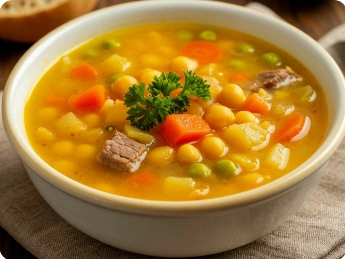 Гороховый суп: практичный гид для идеального результата Здесь — только суть. Четкие шаги, проверенные хитрости и детали, которые решат. Ингредиенты (на кастрюлю 4-5 л): · Горох (колотый) — 250 г · Мясо для бульона (говядина на кости/свинина/курица) — 500-700 г · Копченость (ветчина, копченая грудинка, ребрышки) — 200-300 г (для вкуса) · Коренья — 2-3 шт. моркови, 1 шт. петрушки/пастернака (по желанию) · Лук репчатый — 2 головки · Масло сливочное или растительное — 2 ст.л. · Соль, перец черный горошком, лавровый лист Пошаговая инструкция ШАГ 1: ЗАМОЧИТЬ ГОРОХ (ОБЯЗАТЕЛЬНО!) · Промойте 250 г колотого гороха. · Залейте его холодной водой (минимум на два пальца выше). · Оставьте на 6-8 часов или на ночь. Если времени нет, залейте кипятком на 1 час. · Зачем: Это сократит время варки с 2,5 часов до 1-1,5 и предотвратит "каменный" горох. ШАГ 2: СВАРИТЬ БУЛЬОН (ОСНОВА ВКУСА) 1. Мясо (500-700 г) положите в холодную воду (3-3,5 л). 2. Доведите до кипения на сильном огне, снимите ложкой