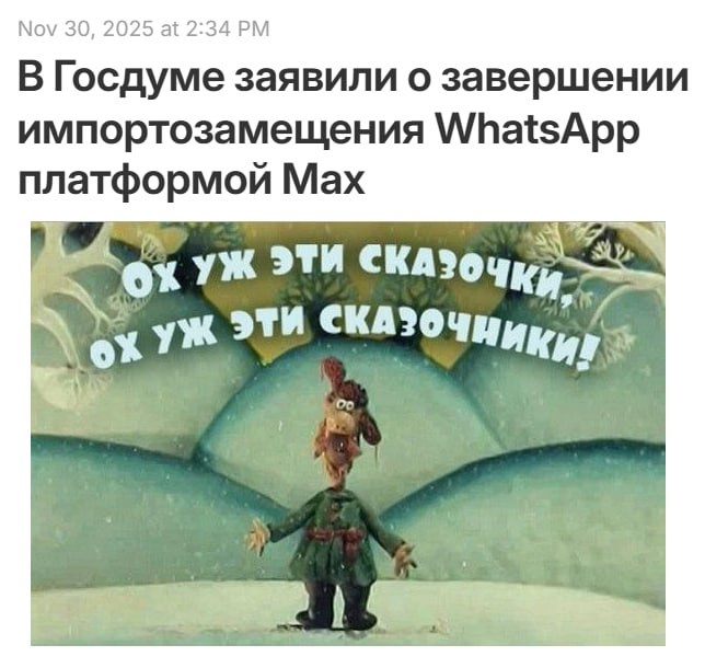 В чём развивается национальный мессенджер «Макс»? Может мне кто-нибудь объяснит? Больше стало товарищей майоров на каждого пользователя? Потому что больше никакого развития нет. Даже реклама о том, что он ловит даже на парковке и в море, почему-то пропала. Хотя, может, по телевизору и крутят, но я телевизор не смотрю. Господин Боярский, просто вы в очередной раз бежите впереди поезда и пытаетесь свои мечты выдать за реальность.