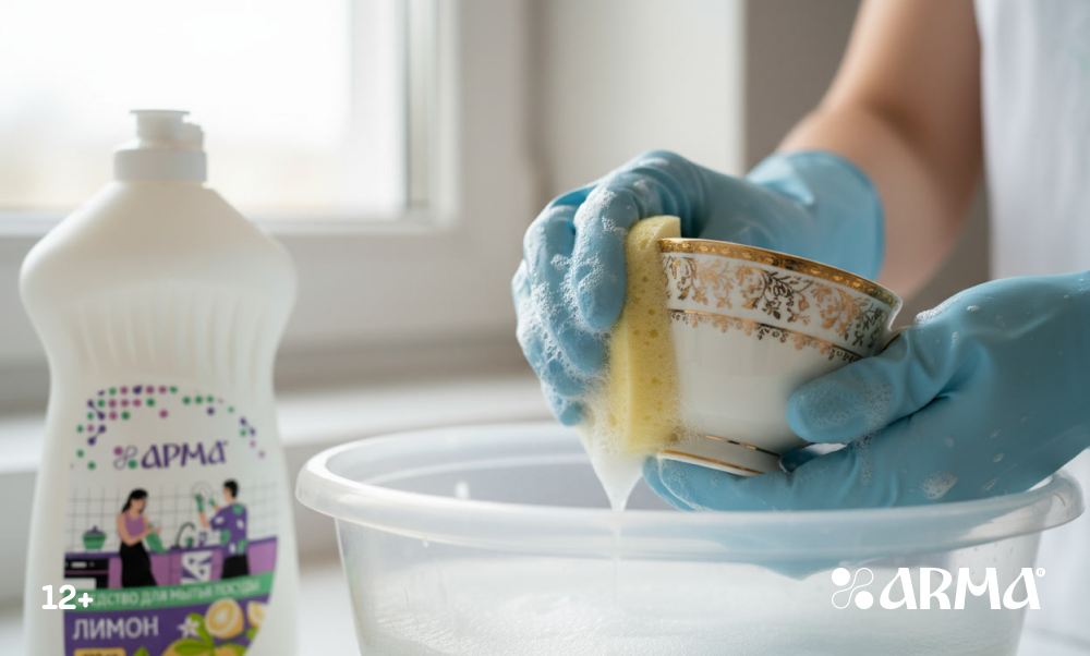 Фарфор – это хрупкий и элегантный материал, который требует бережного ухода. Неправильное мытье может привести к трещинам, сколам и повреждению рисунка. В этом руководстве мы поделимся ключевыми рекомендациями по безопасному мытью фарфоровых изделий, чтобы вы могли сохранить их красоту и целостность на долгие годы. Перед началом мытья соберите все необходимое. Вам понадобятся: мягкая губка, жидкое моющее средство без абразивных частиц, сода, уксус, полотенце для сушки и пластиковый таз или глубокая миска. Налейте в таз теплую (но не горячую) воду. Мыть фарфор в раковине не рекомендуется, так как ее поверхность увеличивает риск случайного повреждения. Начните с удаления остатков пищи с помощью мягкой салфетки, чтобы избежать лишнего трения. Нанесите небольшое количество моющего средства на мягкую губку или ткань. Избегайте порошков и гелей с отбеливателями или абразивами, которые могут поцарапать глазурь. Мы рекомендуем использовать средство для мытья посуды Алое Вера бренда Арма, кот