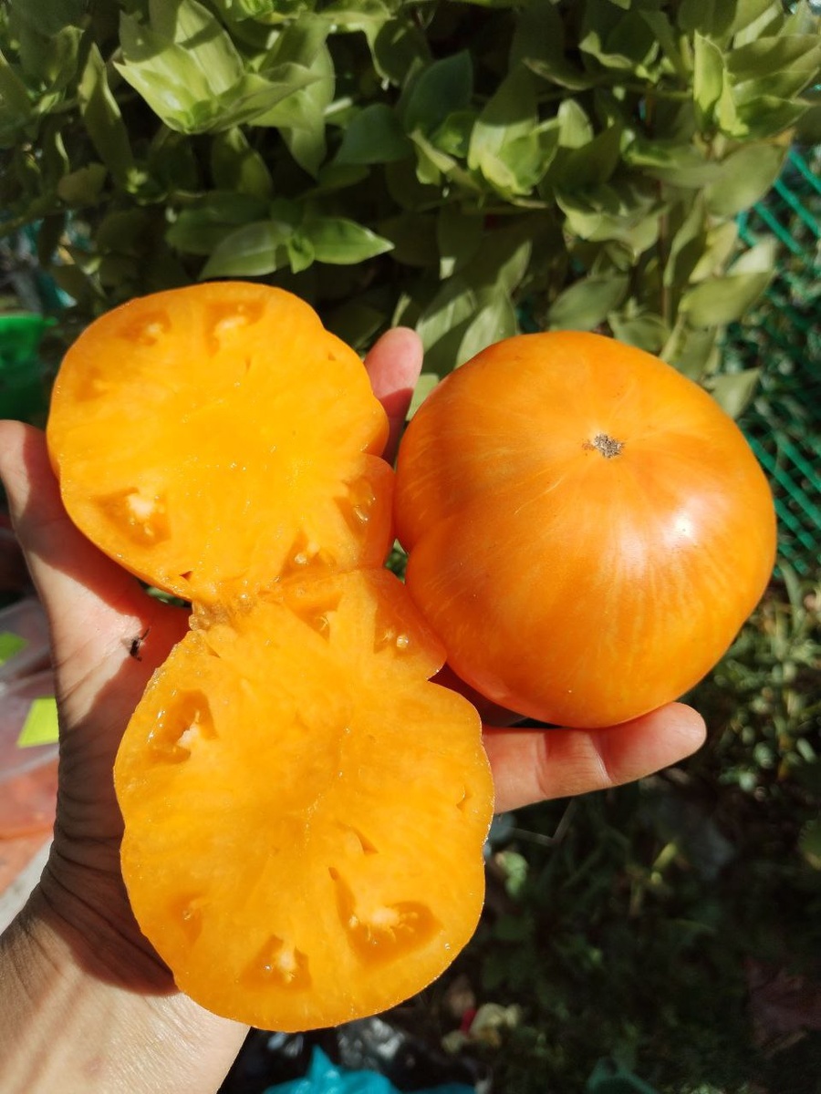 В этом сезоне понравился Оранжевый джаз. В такой сложный сезон дал отличный урожай вполне качественных и вкусных томатов. Когда другие сдались, этот продолжал отдавать урожай и плоды не мельчали👍 На разрезе одна сплошная мякоть и тот самый маслянистый вкус. Рос как все без пасынкования и подвязки. Семена на моем сайте naumpomidor.ru Желтые помидоры.