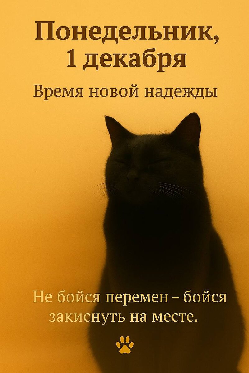 АСТРОБуба на связи! 1 декабря 🌤 Астропогода дня: Декабрь начинается под мягким влиянием Венеры и стабилизирующего Тельца. Это день, когда Вселенная сама снижает скорость, чтобы из ноябрьской гонки перейти в зимний лад. ♈ Овен 💼 Бизнес: Сегодня достаточно навести порядок в незавершёнках — это даст неожиданный приток энергии. 💞 Отношения: Благоприятный день для компромисса, который раньше казался невозможным. ☕ Здоровье: Организм просит теплоты — плед, горячий чай, минимум геройства. 🐾 Совет Бубы: Сегодня твоя задача — не сжечь себя на разгонe. Сделай одно важное дело. ♉ Телец 💼 Бизнес: Сегодня вы в своей стихии: всё, что требует стабильности, аккуратности и вкуса — ваше. Отличный день для планирования бюджета, покупок, долгих проектов. 💞 Отношения: Телец сегодня притягателен, как кот на тёплой батарее. ☕ Здоровье: Сделайте акцент на комфорт: теплая еда, отсутствие стресса, прогулки. 🐾 Совет Бубы: Не спеши. Красивые вещи растут медленно ♊ Близнецы 💼 Бизнес: День подходит дл