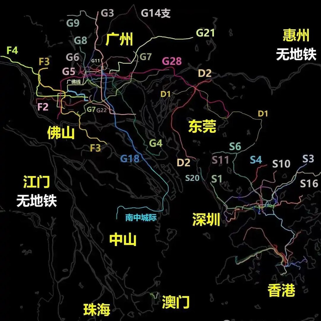 Шэньчжэнь, в свою очередь, продлевает свои линии до Хуэйчжоу на востоке. Когда все участки соединятся, получится непрерывная сеть метро длиной более 200 километров, проходящая через пять городов.