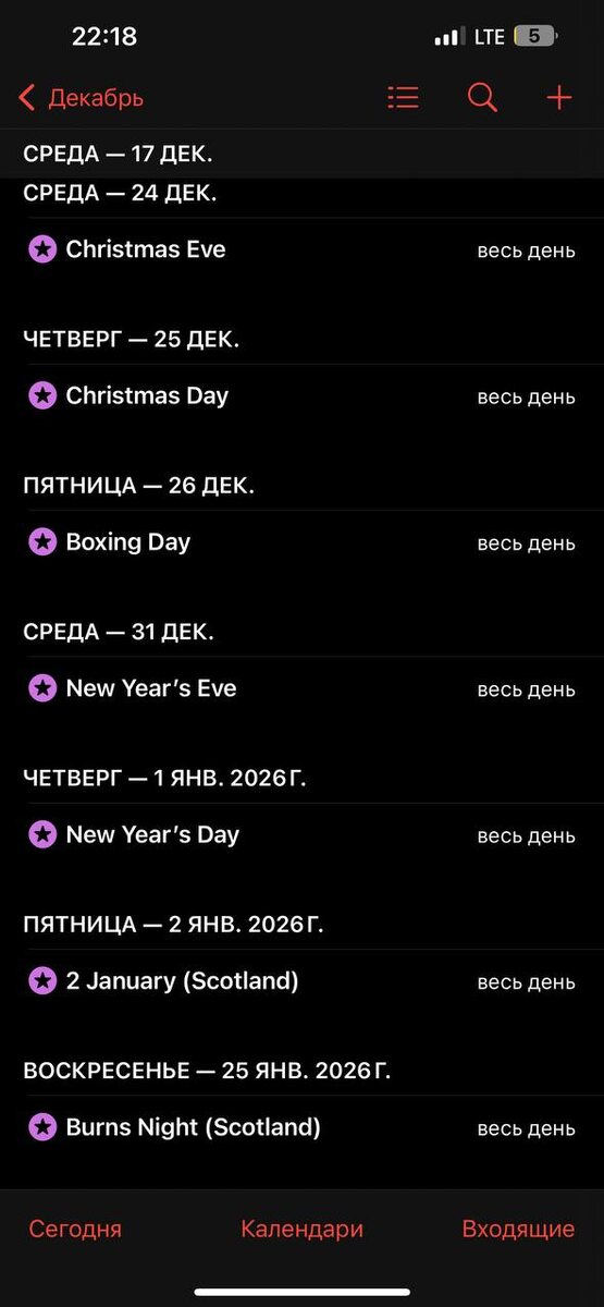 не знала о такой функции поменяла регион айфона на UK Великобританию, честно говоря, просто, чтобы смотреть тик токи а в календаре автоматически добавились все британские праздники включая Шотландию и др ее части знание праздников очень важно для сдачи любого экзамена по английскому, так что пользуйтесь этим лайфхаком! желаю всем продуктивной и не слишком выматывающей недели! на дворе уже декабрь…