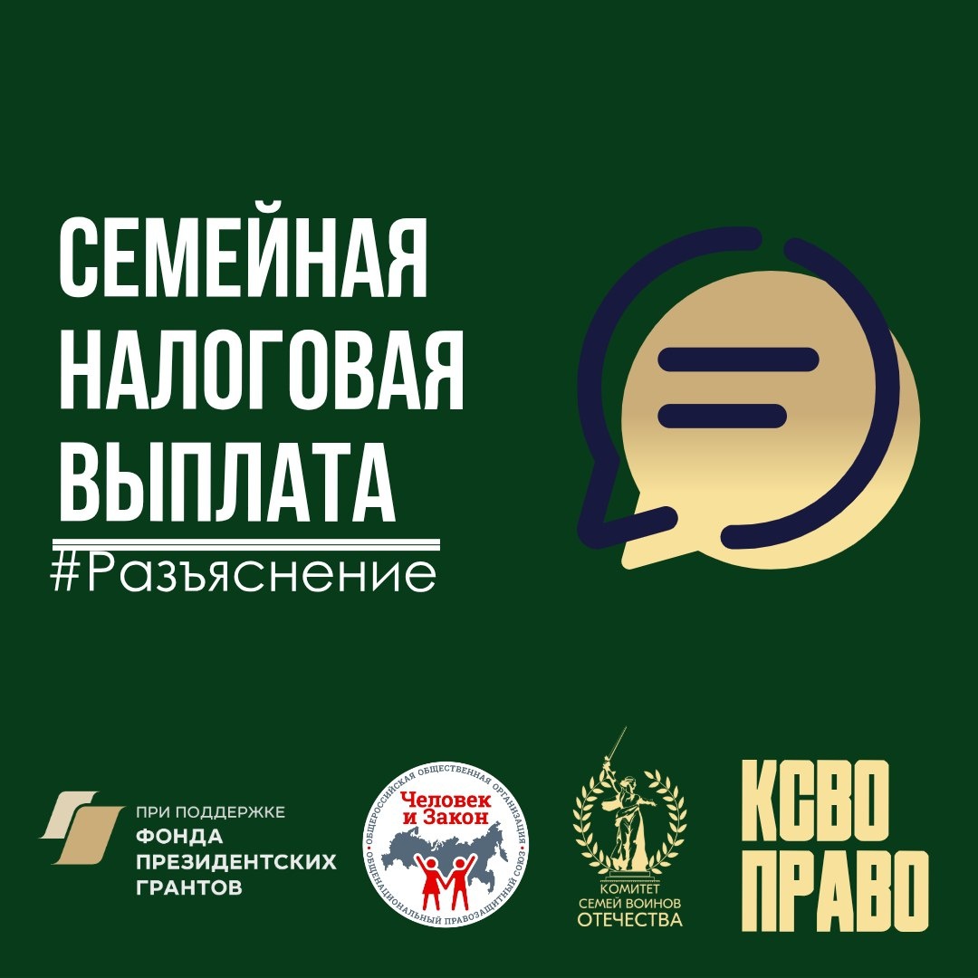 С 1 января 2026 г. в России вводится новая мера поддержки для семей с детьми — семейная налоговая выплата. Юристы правовой службы Комитета семей воинов Отечества разъясняют, что это за выплата и кто может на нее рассчитывать. Суть нововведения: В течение года семья платит НДФЛ 13% как обычно. По итогам года, если семья подходит под критерии, она подает заявление. СФР возвращает 7% от суммы уплаченного налога. Право на выплату есть у каждого из родителей, которые соответствует всем условиям: Важно: Подать на выплату может каждый из родителей, даже если живут раздельно. Но при наличии задолженности по алиментам, выплата не предоставляется. Формула проста: Доход всех членов семьи за год / на количество членов семьи / 12 месяцев. Полученную сумму семья сравнивает с 1,5-кратным прожиточным минимумом в вашем регионе. Если ее доход меньше — вы в числе потенциальных получателей. Куда обращаться: в Социальный фонд России (СФР) через «Госуслуги» или МФЦ. Когда подавать: ежегодно с 1 мая по 1 окт