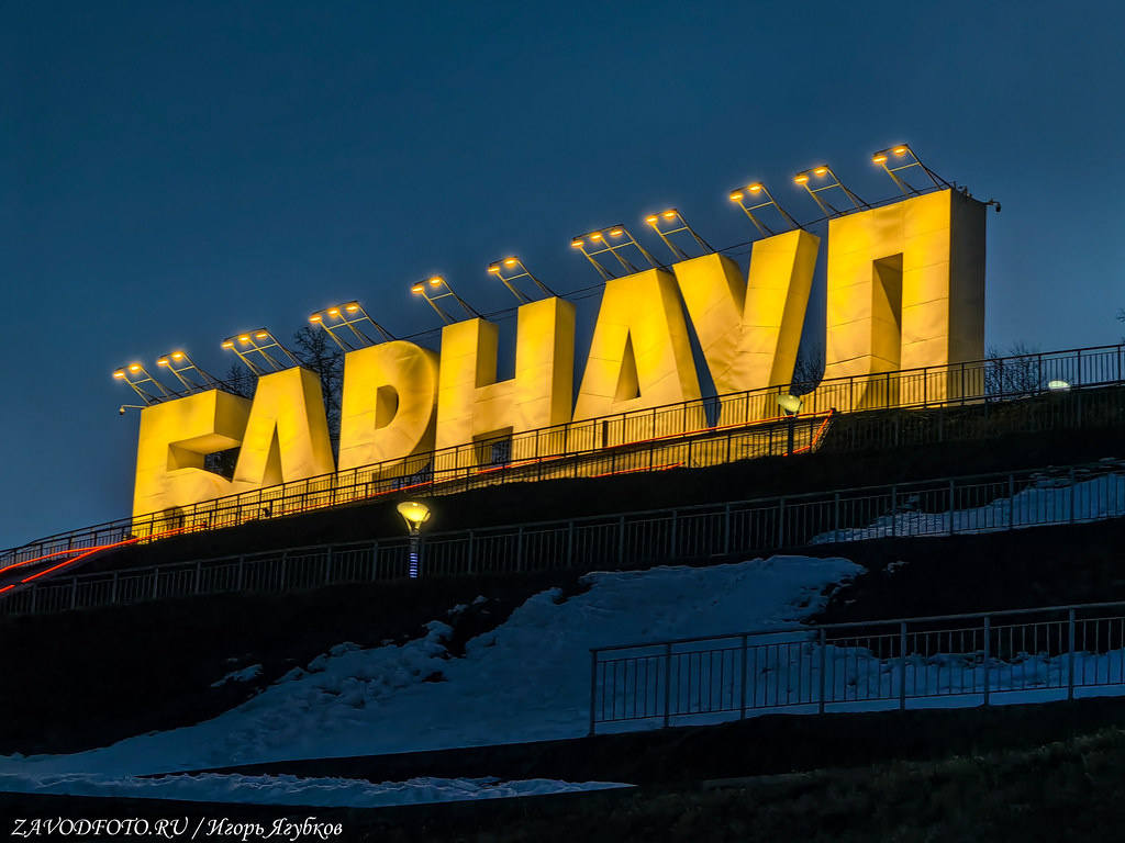 Эту 20-метровую надпись хорошо видно и днем и ночью всем путешественникам, которые приезжают в Барнаул по Новому мосту. Огромные белоснежные буквы установили на склоне Нагорного парка еще в 1997 году. С тех пор это символ города, его визитная карточка. Самый эффектный вид на надпись - в сумерках и ночью, когда включается подсветка и кажется, что конструкция парит в воздухе.
