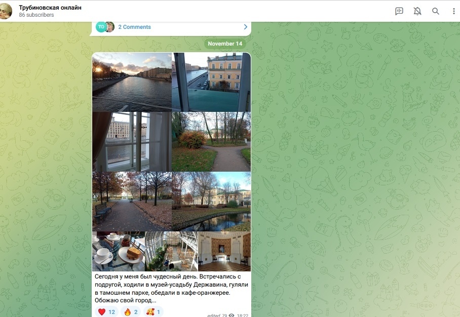 Мне несказанно повезло - я живу в Петербурге. Это значит, что у меня есть миллион способов провести своё свободное время. Недавно встречались с подругой и культурно отдыхали. Кстати, подписчики моего телеграм-канала "Трубиновская онлайн" наблюдали это в режиме реального времени. Мы с подругой вместе отучились пять лет на филфаке, поэтому наши развлечения часто имеют некий литературный оттенок. :) Мы любим ходить в дома-музеи писателей, даже в Ясную Поляну к Толстому вместе ездили. Были и у Пушкина, и у Достоевского, и у Ахматовой, и у Бродского и т.д. Ну и, конечно, в "Бродячей собаке": А недавно встретились и отправились в музей-усадьбу Державина на набережной Фонтанки. Это тот самый "старик Державин", который "нас заметил и в гроб сходя благословил". Усадьба шикарная, настоящий дворец, а рядом еще красивый сад. В этом дворце даже свой театр есть. Можно купить билет только в сад, можно только в усадьбу, можно на разные экспозиции, но мы купили единый (600 р.), чтобы все посмотреть.