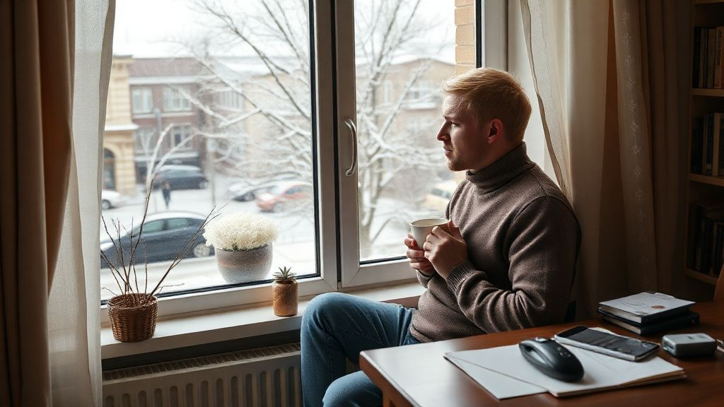 Утро в маленькой квартире на окраине Минска начиналось с запаха свежесваренного кофе. Алексей стоял у окна, глядя на серый двор, где первые снежинки кружили над припорошенными сугробами. В руках он держал кружку с горячим напитком, пар от которой туманил стекло. За спиной, в кухне, жужжал кофемол. Это был их ритуал — кофе перед работой. Но сегодня что-то в воздухе висело тяжелее обычного. Жена, Марина, сидела за столом, просматривая телефон, ее пальцы нервно скользили по экрану. Она не смотрела на него, и это молчание резало острее слов.