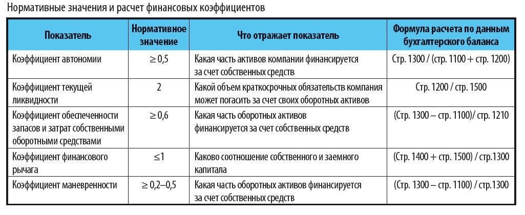 📂 Как рассчитывают основные финансовые коэффициенты? Финансовые коэффициенты — это показатели, отражающие результаты финансовой деятельности компании. С их помощью можно определить платежеспособность компании, насколько эффективно она использует свои ресурсы и т. д. Главным источником информации для факторного анализа финансовых коэффициентов является бухгалтерский баланс. В таблице показан порядок расчета основных финансовых коэффициентов и их нормативные значения.