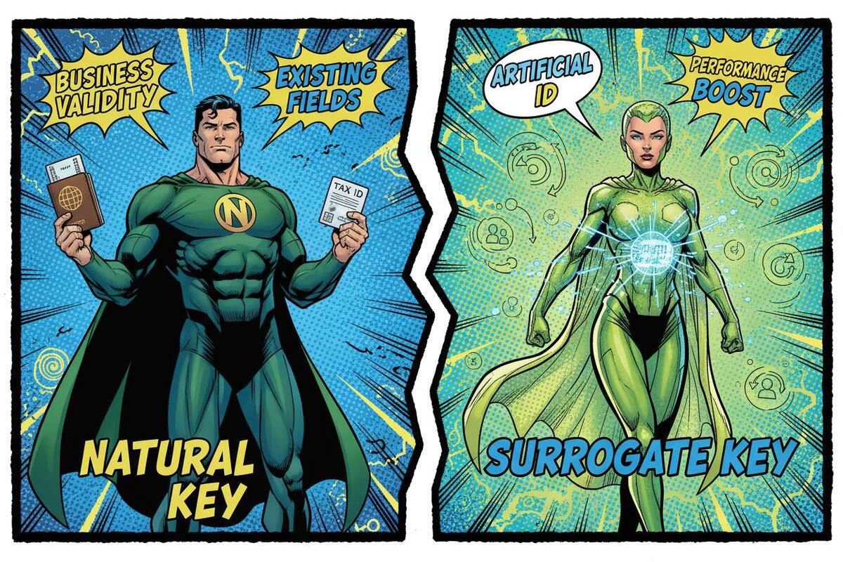 Что такое естественный и суррогатный primary key Коллеги, всем привет! В нашем канале разного уровня специалисты, этот пост будет полезен Junior разработчикам. Выбор первичного ключа — это фундаментальное решение, которое влияет на производительность, целостность данных и удобство сопровождения БД. Существует два основных подхода: естественные и суррогатные ключи. Давайте разберёмся, чем они отличаются и когда какой использовать. Естественный ключ (Natural Key) Это атрибут (или набор атрибутов) из предметной области, который по своей природе уникально идентифицирует запись. Примеры: 🔹 ИНН организации 🔹 Email пользователя 🔹 Номер паспорта 🔹 VIN автомобиля 🔹 ISBN книги CREATE TABLE employees ( email VARCHAR2(100) PRIMARY KEY, first_name VARCHAR2(50), last_name VARCHAR2(50) ); Преимущества естественных ключей ✅ Имеют бизнес-смысл — понятны пользователям ✅ Защищают от дубликатов на уровне данных ✅ Не требуют дополнительных столбцов Недостатки ❌ Могут изменяться (например, ema