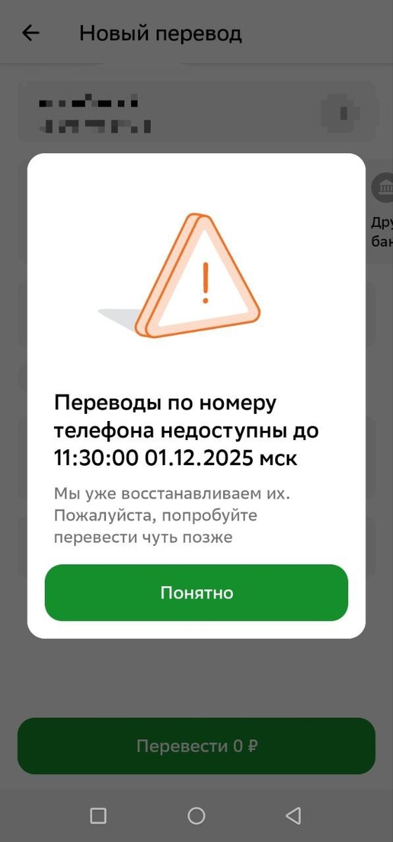 ⚡️Сбербанк-онлайн "приболел" в первый день зимы Пользователи из Нижнего Тагила сообщают о массовых проблемах с переводами по номеру телефона. ❌ В банке обещают восстановить работу к 11:30 (мск). Подробности на сайте #Сбербанк #Сбой #Тагил #Новости #ОнлайнБанк